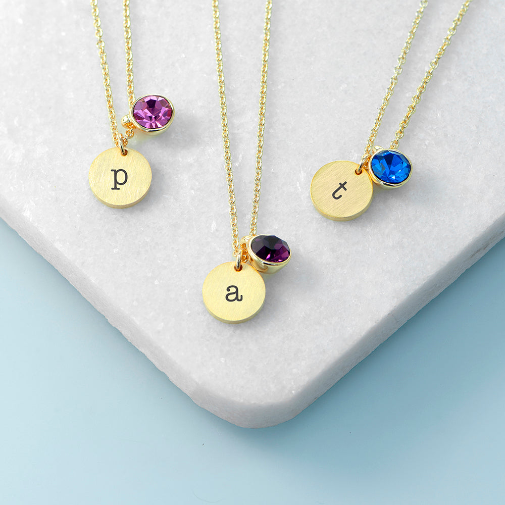Celebrate the birthday of someone special with our Personalised Monogram Birthstone Crystal and Disc Necklace in luxurious gold. Whether you’re looking for something special for your other half, your mum, your sister, or your bestie, this stunning golden birthstone necklace is sure to make them feel as special as they are.
