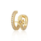 Crafted in high-quality sterling silver, this striking ear cuff embodies the elegance of modern minimalism while evoking the allure of the night sky. The dual-band construction features one shimmering, crystal-encrusted band that catches the light with every movement, and a contrasting sleek, polished band adorned with a beautifully faceted eight-pointed star motif. At the heart of the star lies a single, radiant cubic zirconia stone, carefully set to enhance its brilliance and create the illusion of a star suspended gracefully above the ear.