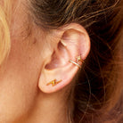 This meticulous design underwent multiple refinements to achieve the perfect positioning of the star, ensuring both comfort and aesthetic balance. The result is an artfully engineered piece that appears effortlessly poised, giving the impression of a floating celestial body orbiting the wearer’s ear. The smaller 9mm diameter, compared to the standard 11mm ear cuffs, allows the piece to sit slightly higher on the ear lobe, providing a snug and flattering fit that complements a variety of ear shapes.