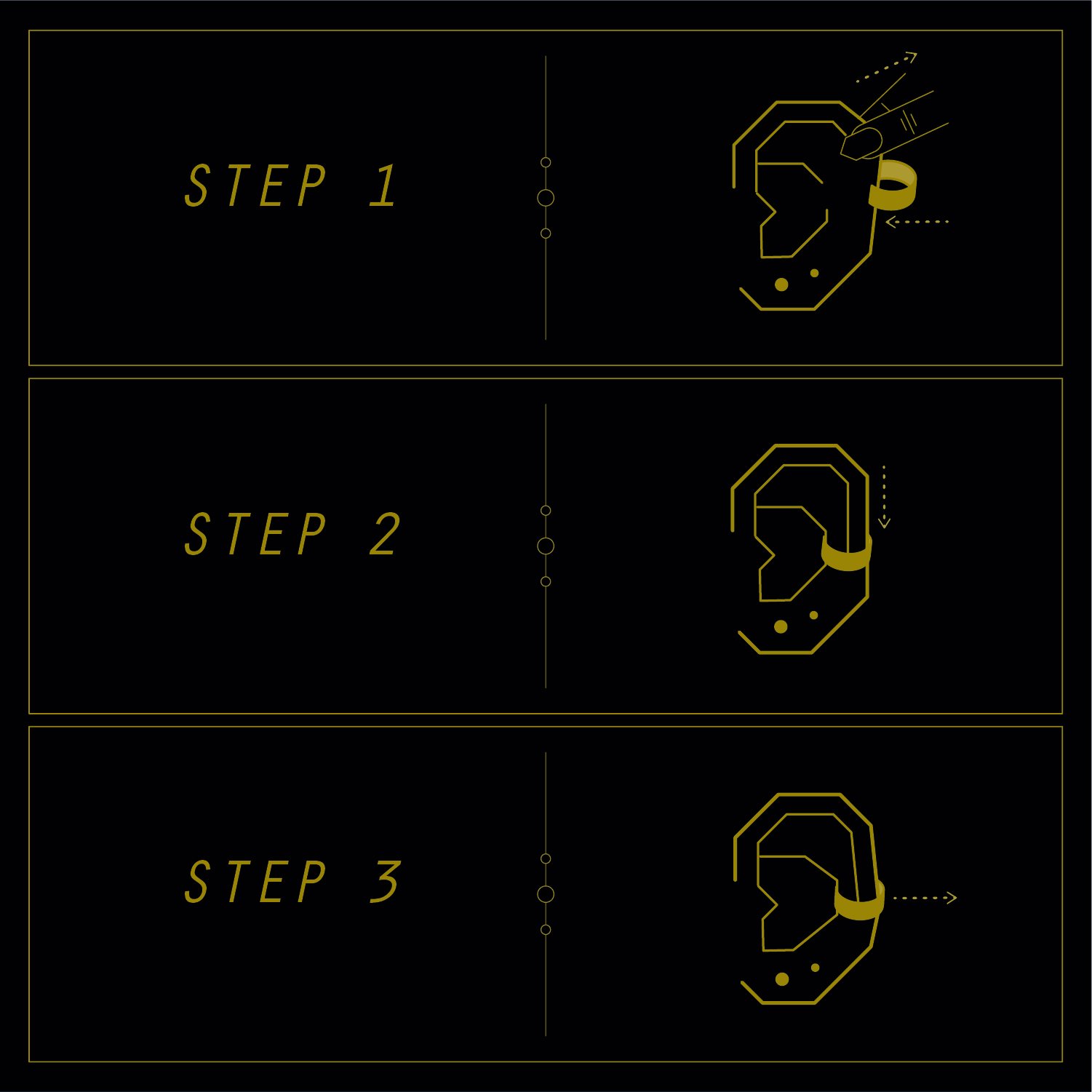 Find the narrowest part of your ear. In most people this is the curled over part of the ear where upper cartilage piercings are - or just above the lobe. Without flexing or trying to widen, slide the ear cuff into position - rotating the ear cuff slightly as you do this can help. NB. Be especially careful not to try and widen the opening of cuffs with inset stones, as this can damage your jewellery. Take a look at our 'How to wear Ear Cuffs - a quick guide'