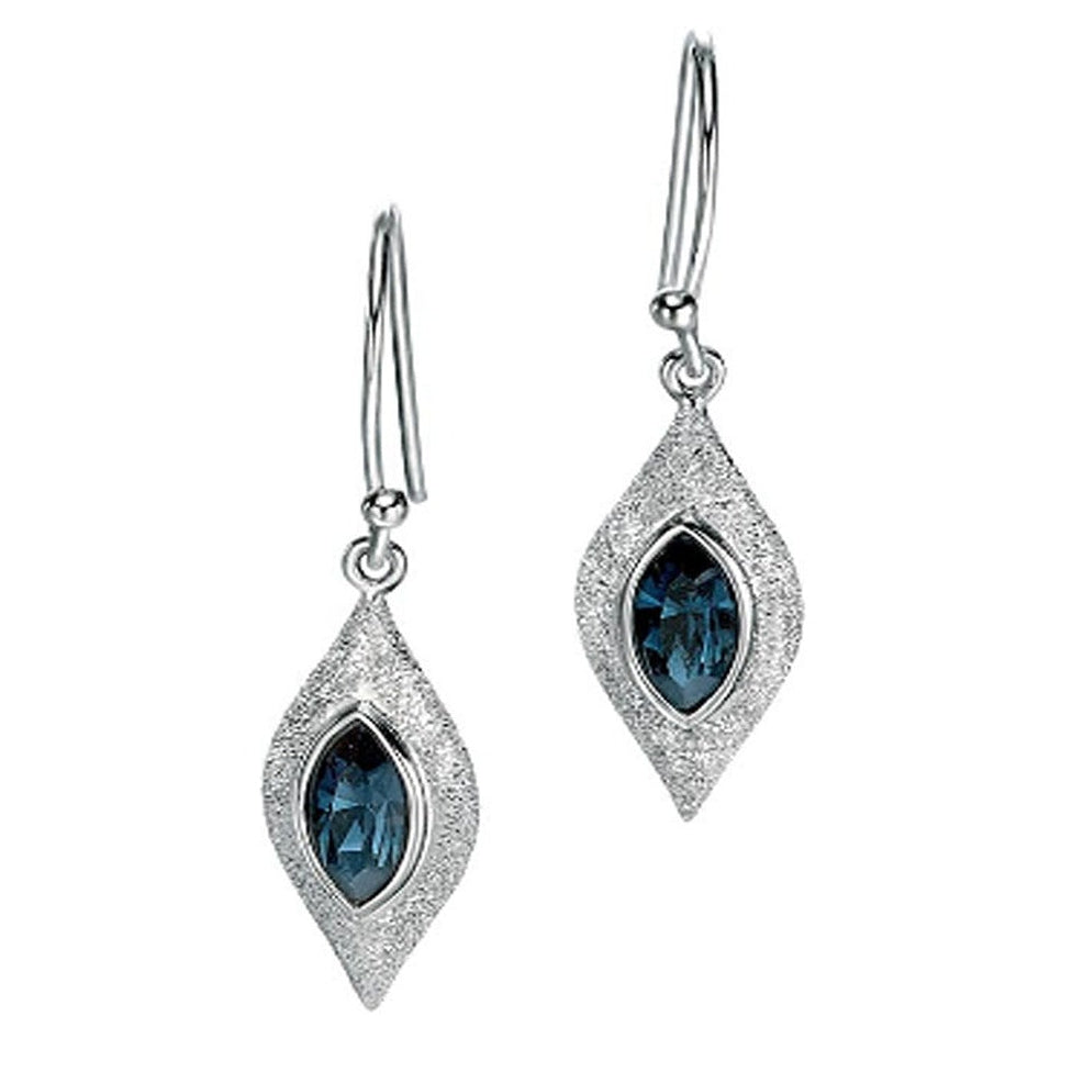 Exuding timeless elegance and refined sophistication, this exquisite pair of Sterling Silver and Blue Topaz Crystal Drop Earrings captures both classic beauty and contemporary allure. Expertly crafted in radiant sterling silver, each earring showcases a distinctive elongated marquise-shaped drop design, gently suspended from a delicate hook fastening. At the heart of each drop lies a striking London blue topaz crystal, faceted to perfection to reveal its mesmerising deep teal-blue hue. This enchanting stone is encased within a sleek silver frame and bordered by a halo of subtle detailing.
