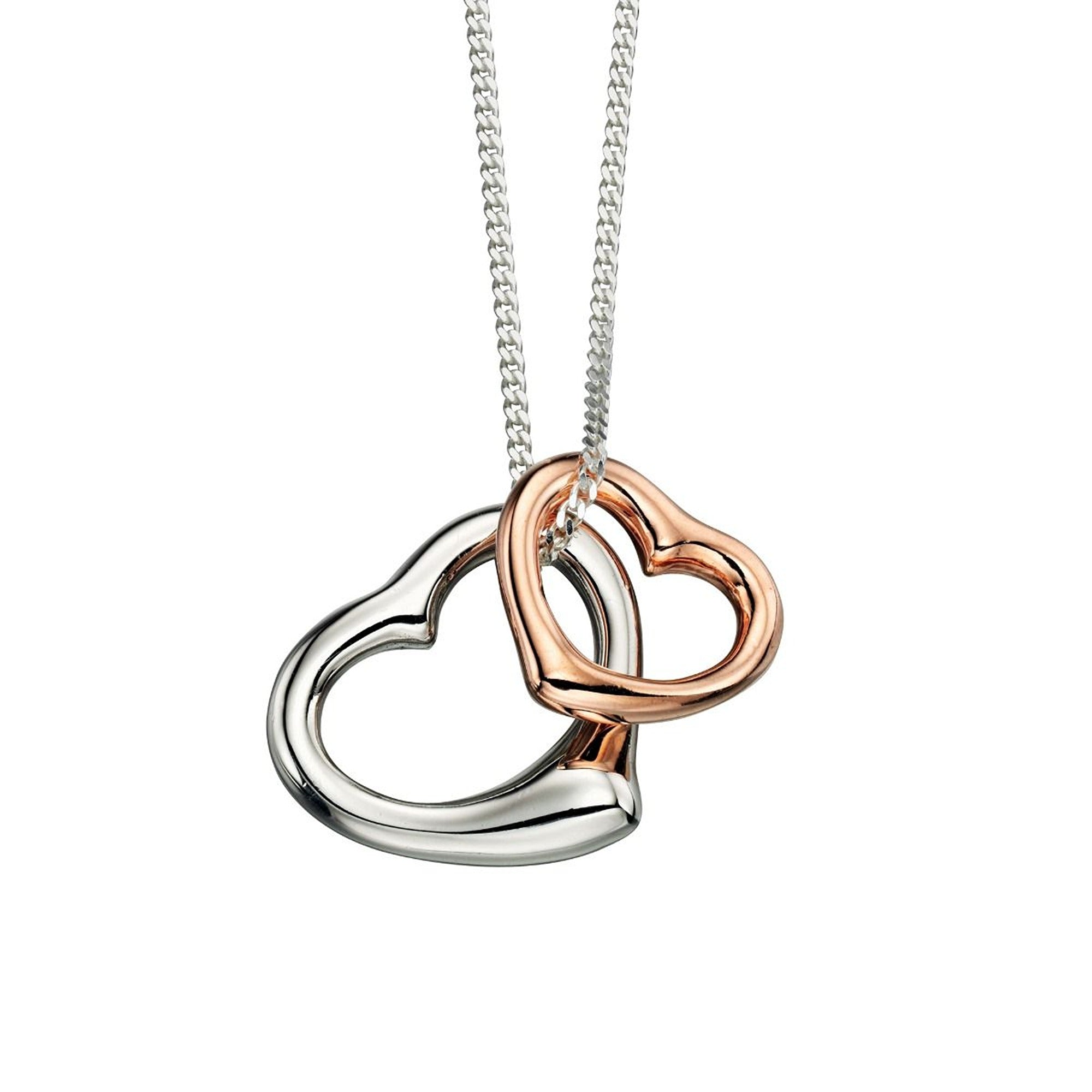 Sterling Silver and Rose Gold Twin Heart Necklace