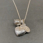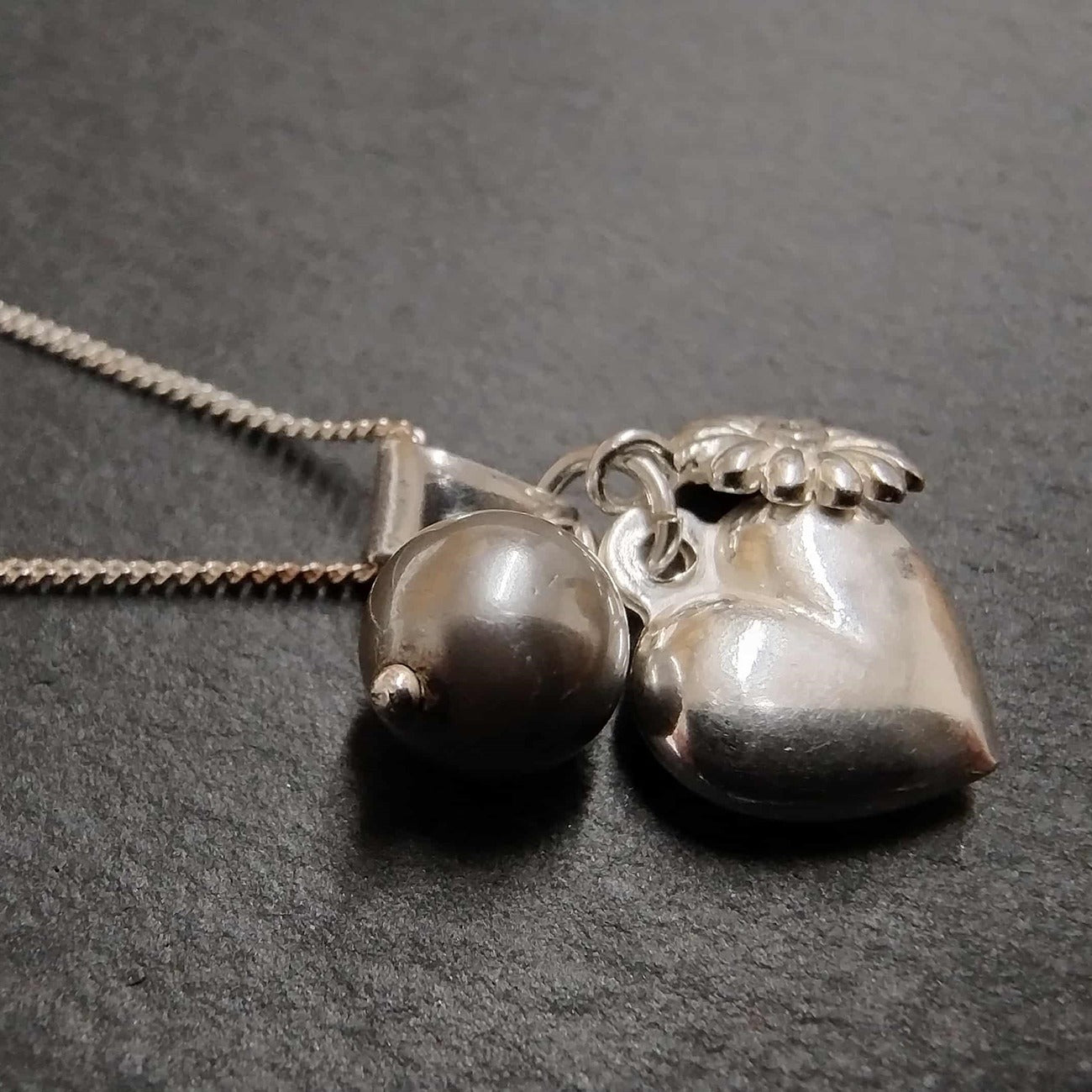 The second charm is a classic heart shape, polished to a radiant shine. Universally recognised as a symbol of love, affection, and emotional connection, the heart charm embodies warmth and devotion. It’s a timeless representation of romantic love, familial bonds, or cherished friendships, making it a versatile and deeply personal element within the composition of the necklace.