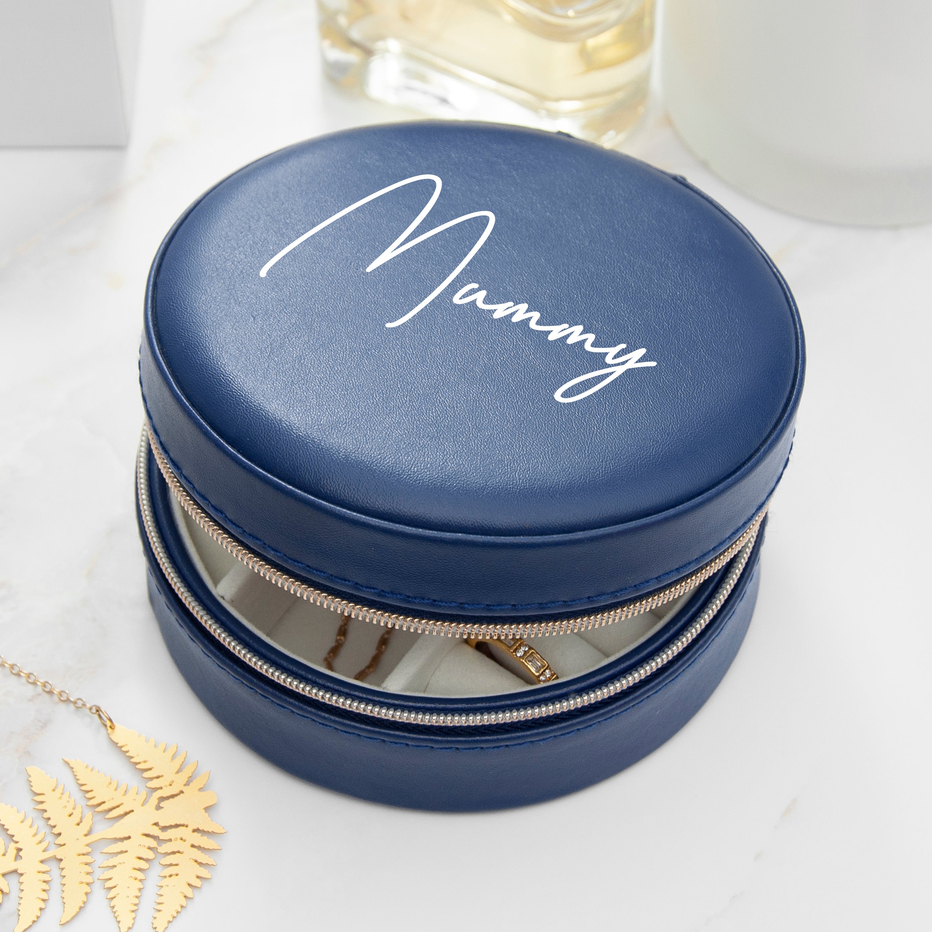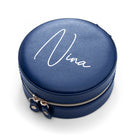 Personalised Navy Blue Round Travel Jewellery Case
