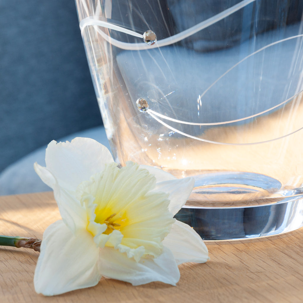 The spiral design is hand etched, with Swarovski crystal accents providing an additional layer of elegance and beauty to this already extraordinary piece of glassware. Plus, as it is made from crystal, this luxurious vase has a high refractive index, meaning wherever it is placed, it’ll have a stunning glistening shimmer.
