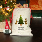 Get your little one a place to store their present, read for Santa to come with our gorgeous personalised Christmas reindeer family Christmas sack. Add a touch of colour and Christmas cheer to your Christmas morning routine with this stylish and hard wearing Christmas sack that can handle years of presents from Santa! Your little one’s Christmas sack will feature a family of super cute reindeer standing around a vibrant Christmas tree with their name underneath.