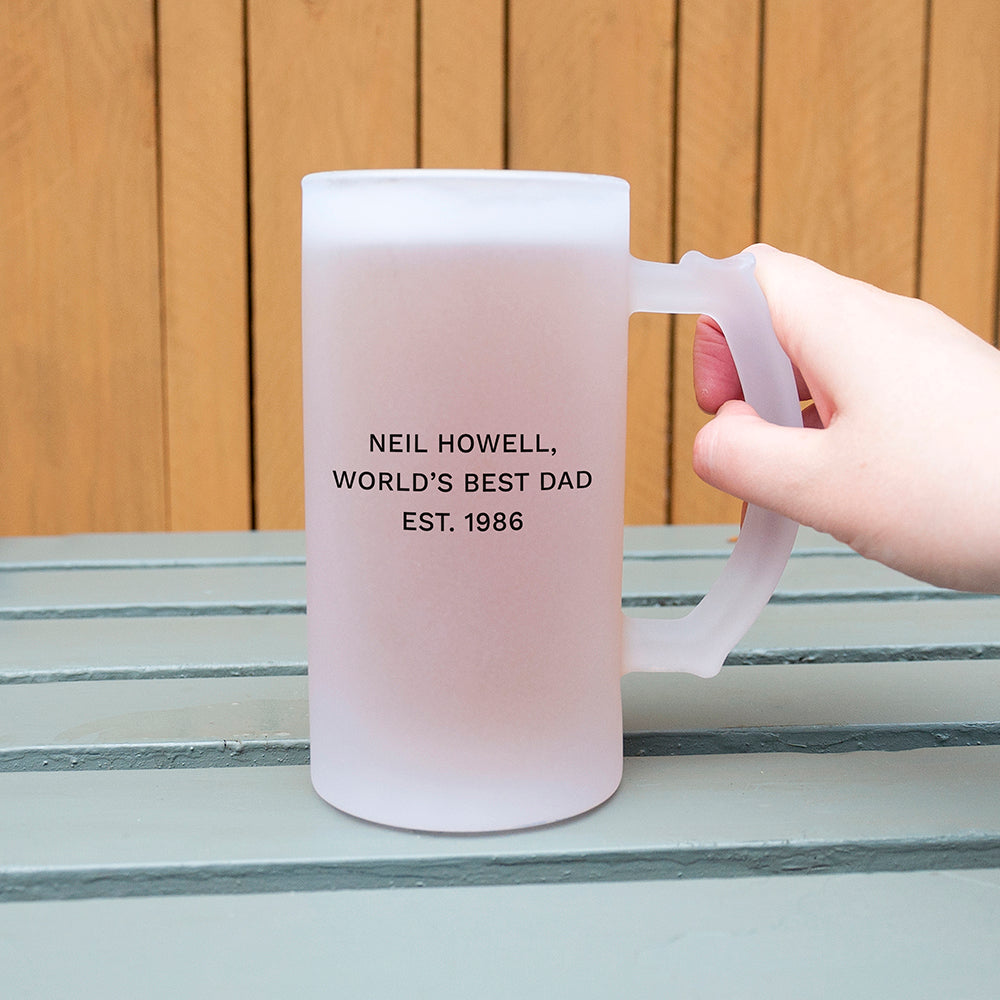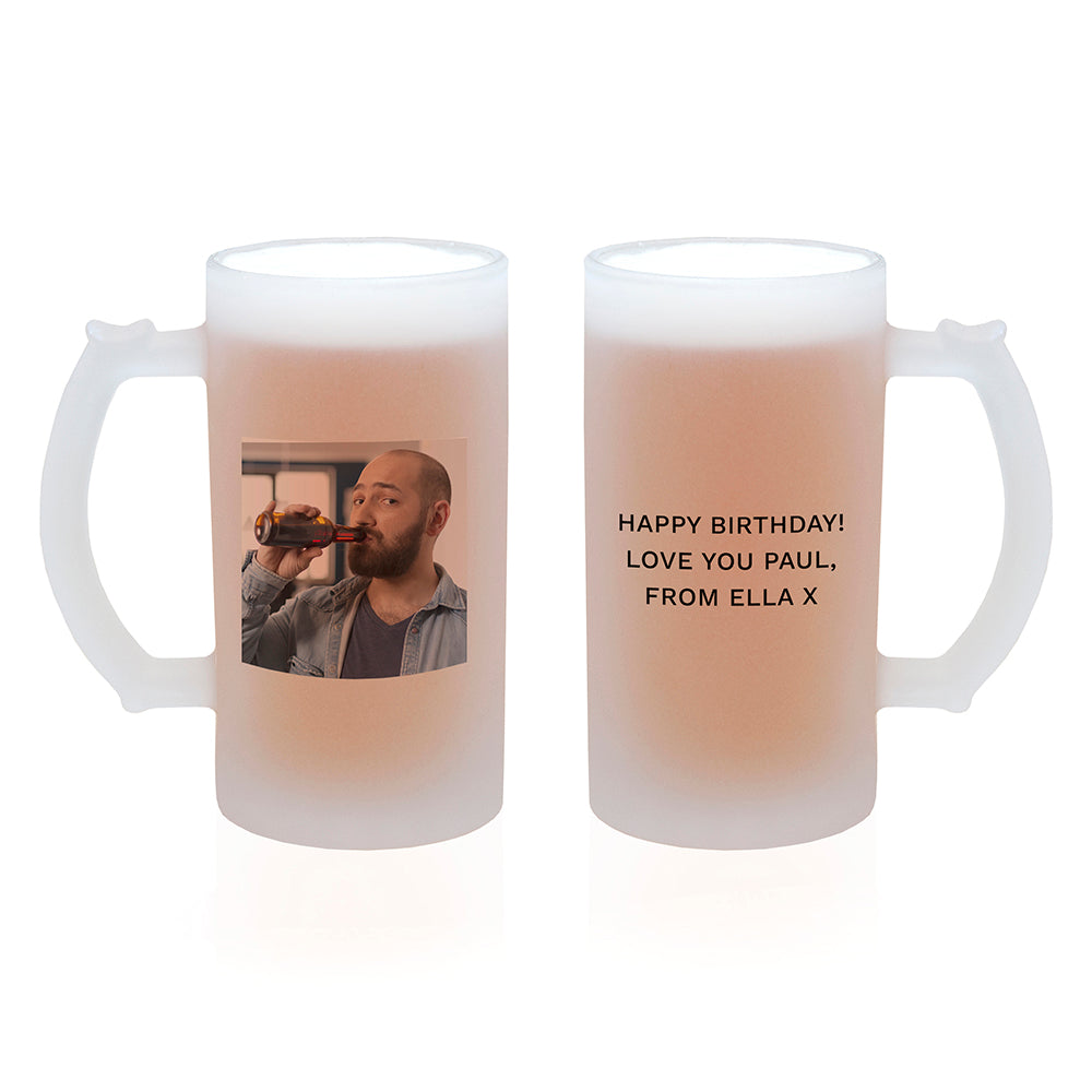 Know a man who loves a laugh and grabbing a beer with friends? Look no further than our Personalised Photo and Message Frosted Beer Stein, the ideal gift for that beer lover in your life. Whether the photo you choose is a poignant memory or an embarrassing mugshot you won’t let him forget about, he’s sure to love his new beer glass.