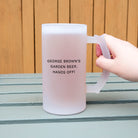 Made from glass, this beer stein features a frosted finish with a sturdy handle.