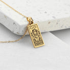 This luxury gold plated necklace features an engraved Strength tarot card design. ‘Strength’ comes as standard text and represents courage, determination and power.
