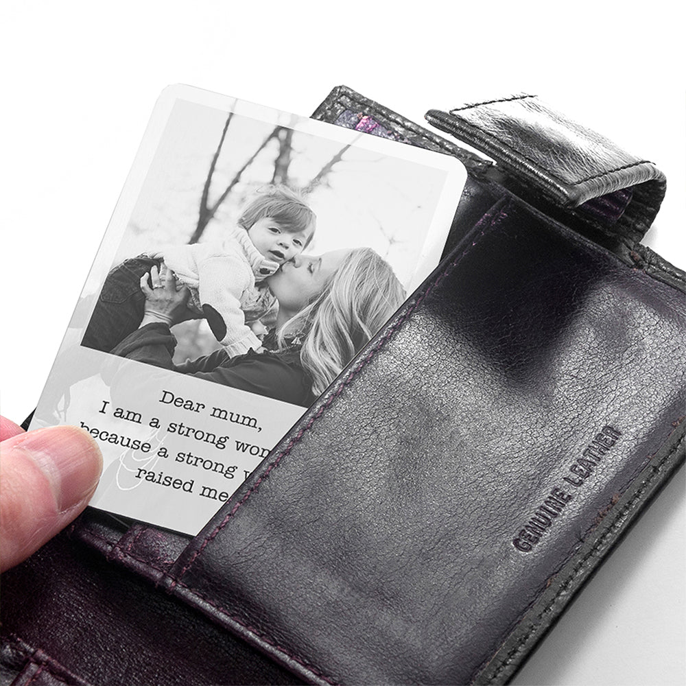 Treat your Mum to a special gift, perfect for her birthday or Mother's Day! Remember your favourite moments together with this gorgeous metal keepsake, which easily slots into any credit card compartment in any wallet or purse.