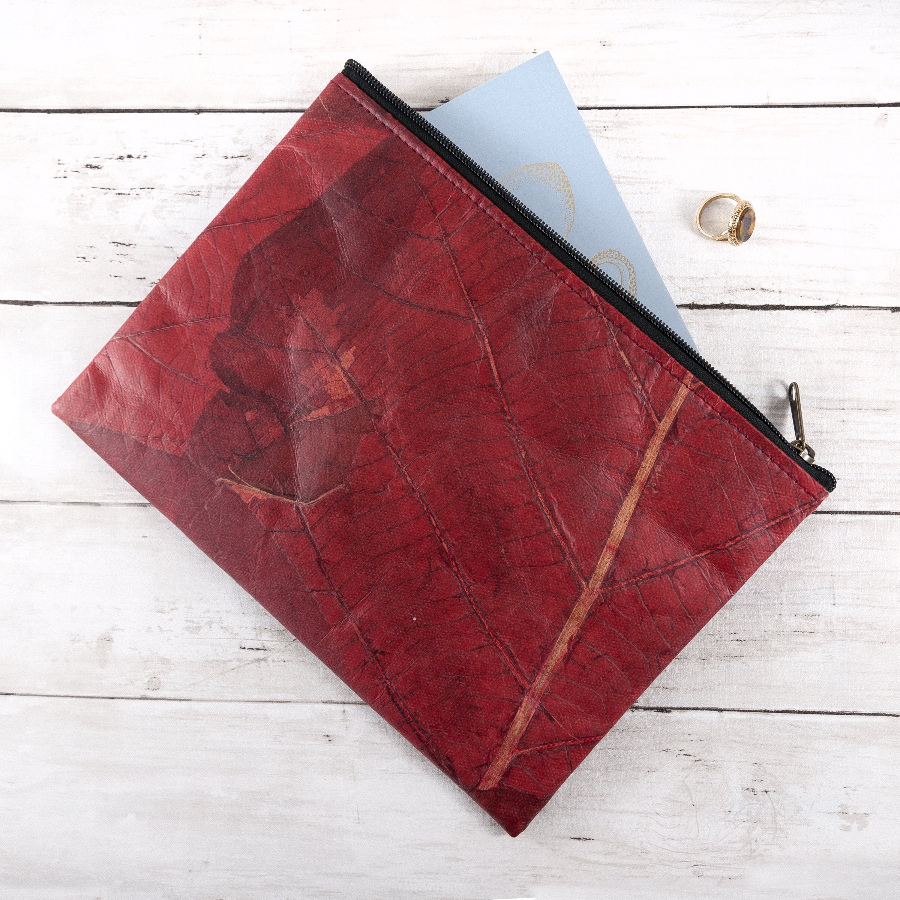 Keep your valuables safe and secure when you’re out and about with our gorgeous Leaf Leather Clutch Bag in vibrant Berry Red. Great for carrying everyday essentials, it’s the perfect place to store your phone, purse, headphones, or anything else that will get you through the day. Made from vegan leaf leather, you can be sure that they’re eco-friendly as well as stylish!