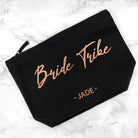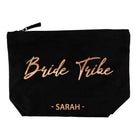 Personalised Bride Tribe Cosmetic Black Bag In Rose Gold