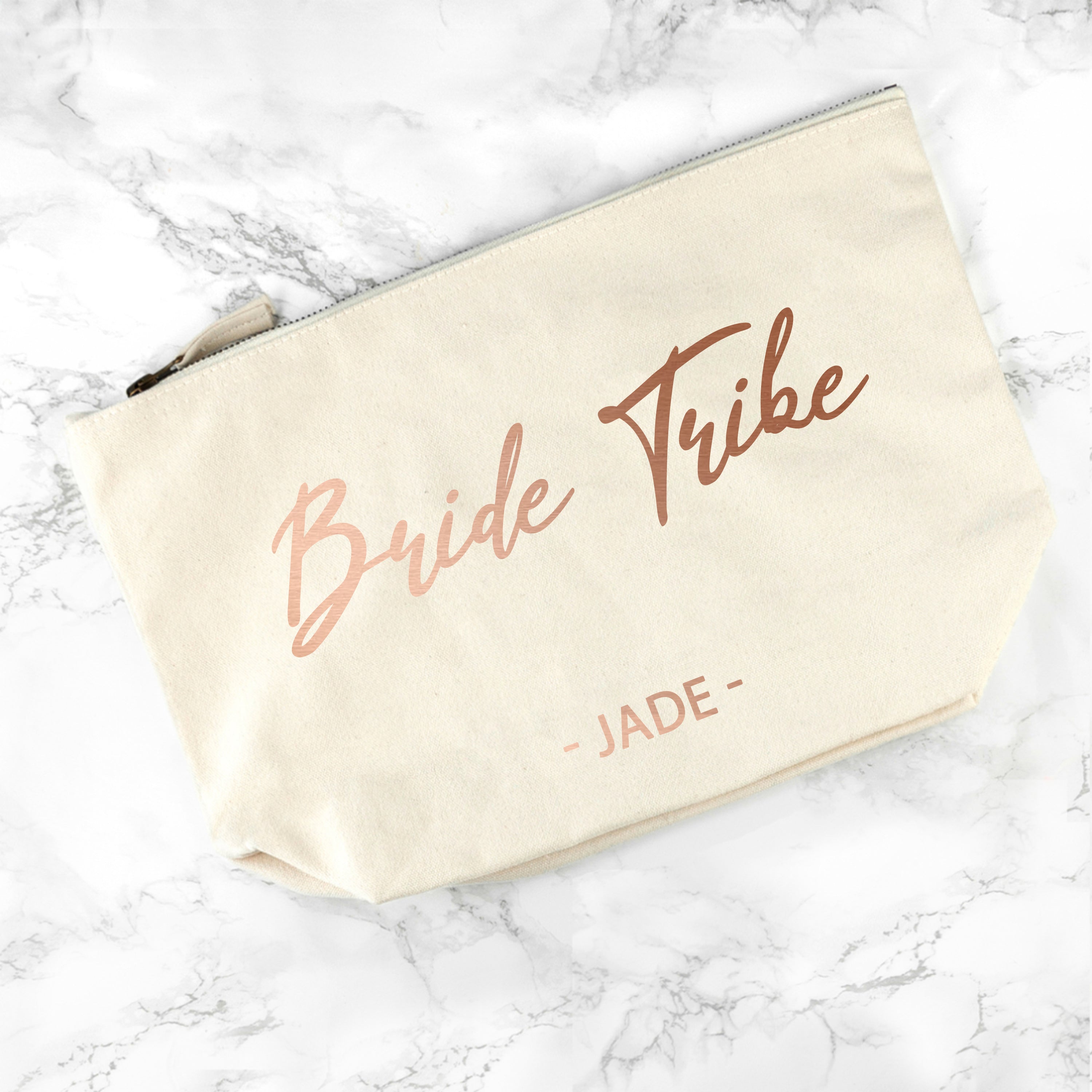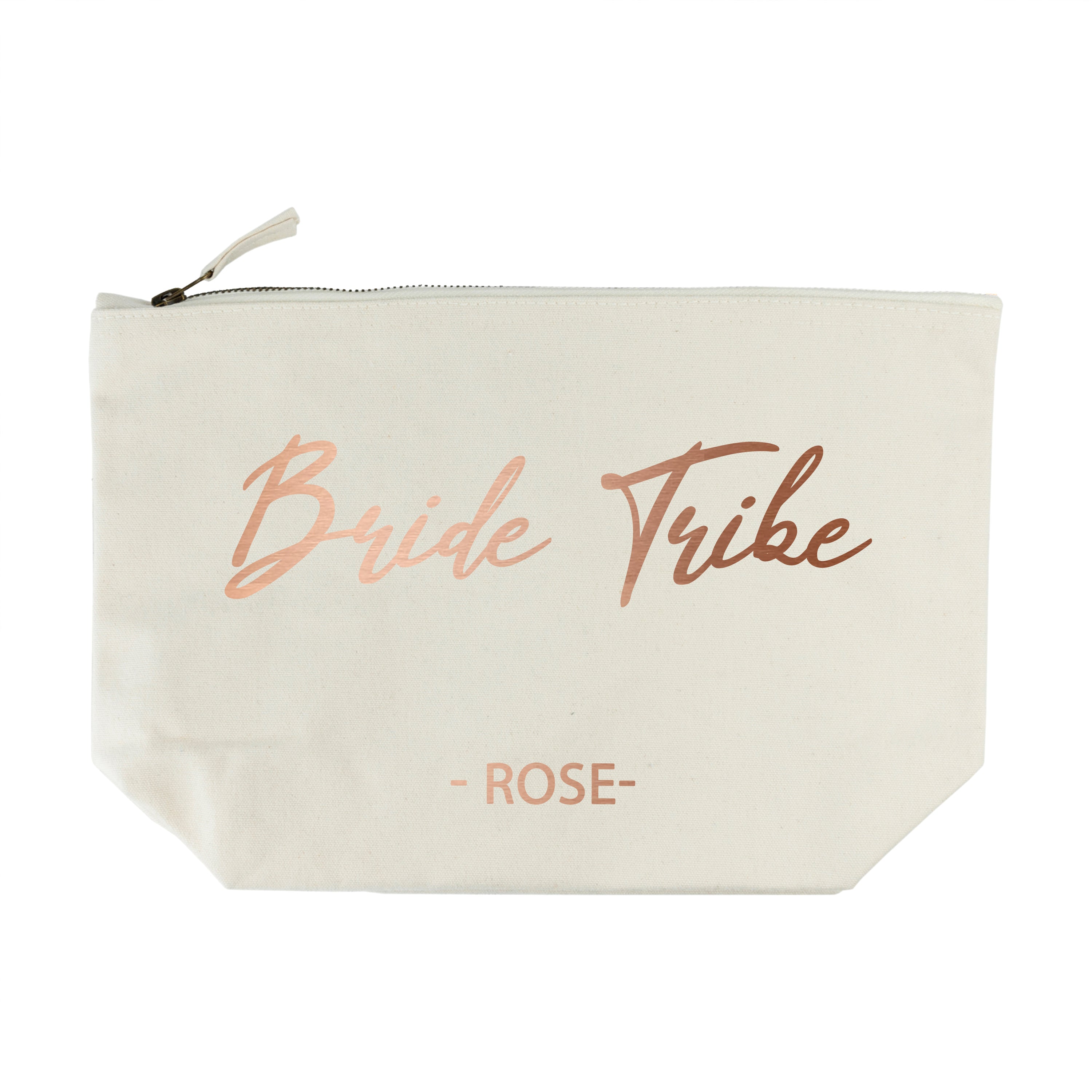 Personalised Bride Tribe Cosmetic Canvas Bag In Rose Gold
