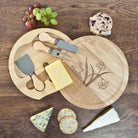 This luxury round cheese or chopping board celebrates the daffodil’s joyful qualities in a playful and elegant design. The engraving features the distinctive daffodil motif paired with a fun, slightly whimsical font that captures the flower’s cheerful and light-hearted personality. To the left of this design, you are able to personalise the board with a full name, making it a unique and truly personal gift that will be treasured for years to come.