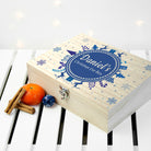 The festive box is printed with a beautiful snowflake wreath and you can choose from two different colourways blue or purple. There are two sizes of box for you to choose from large and mini.