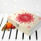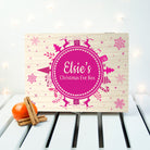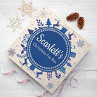 Our snowflake wreath Christmas Eve boxes are available in four colourways: red, blue, purple or pink.