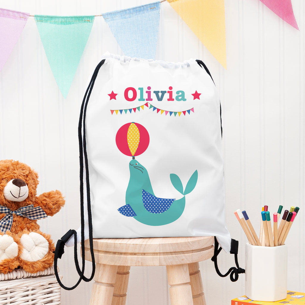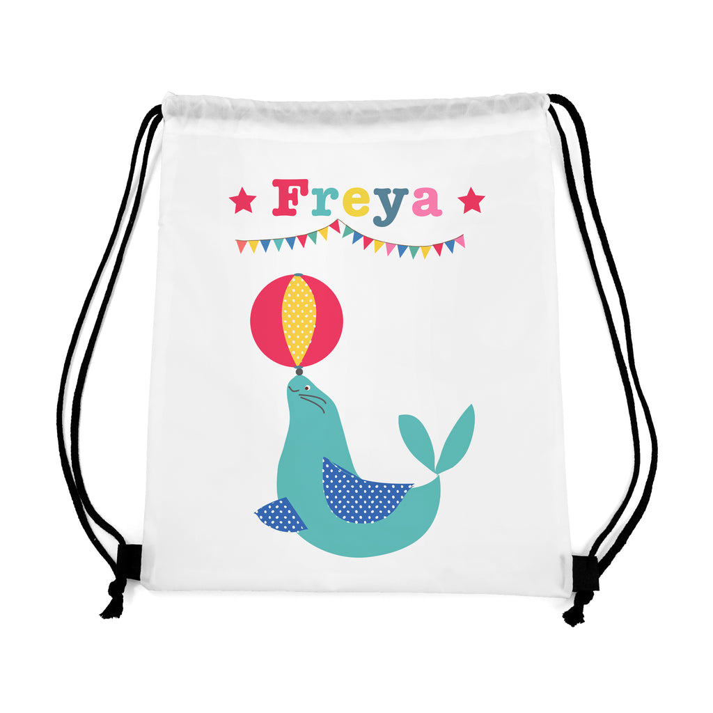 Dive into a world of fun and adventure with our gorgeous personalised circus waterproof swim bag. The perfect birthday or Christmas gift for keen and budding swimmers alike. This premium quality polyester drawstring bag is the ideal swimming lesson companion and will be able to carry all their swimming essentials with ease. From towels to swimming costumes, this handy bag can carry it all.