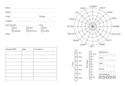 To the right-hand side of the page, a detailed flavour wheel enables you to map the sensory profile of each wine, from floral, fruity or citrus notes through to chocolate, nutty or spicy tones, as well as harsher characteristics such as bitterness or acidity. This visual guide helps to sharpen perception and build vocabulary around tasting. Additional scales are provided to record Colour, from clear through to deep purple, and to place the wine on a continuum of Dry to Sweet.