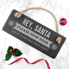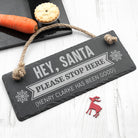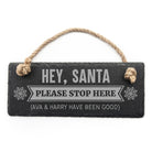 The words 'HEY SANTA PLEASE STOP HERE.' come as standard text.
