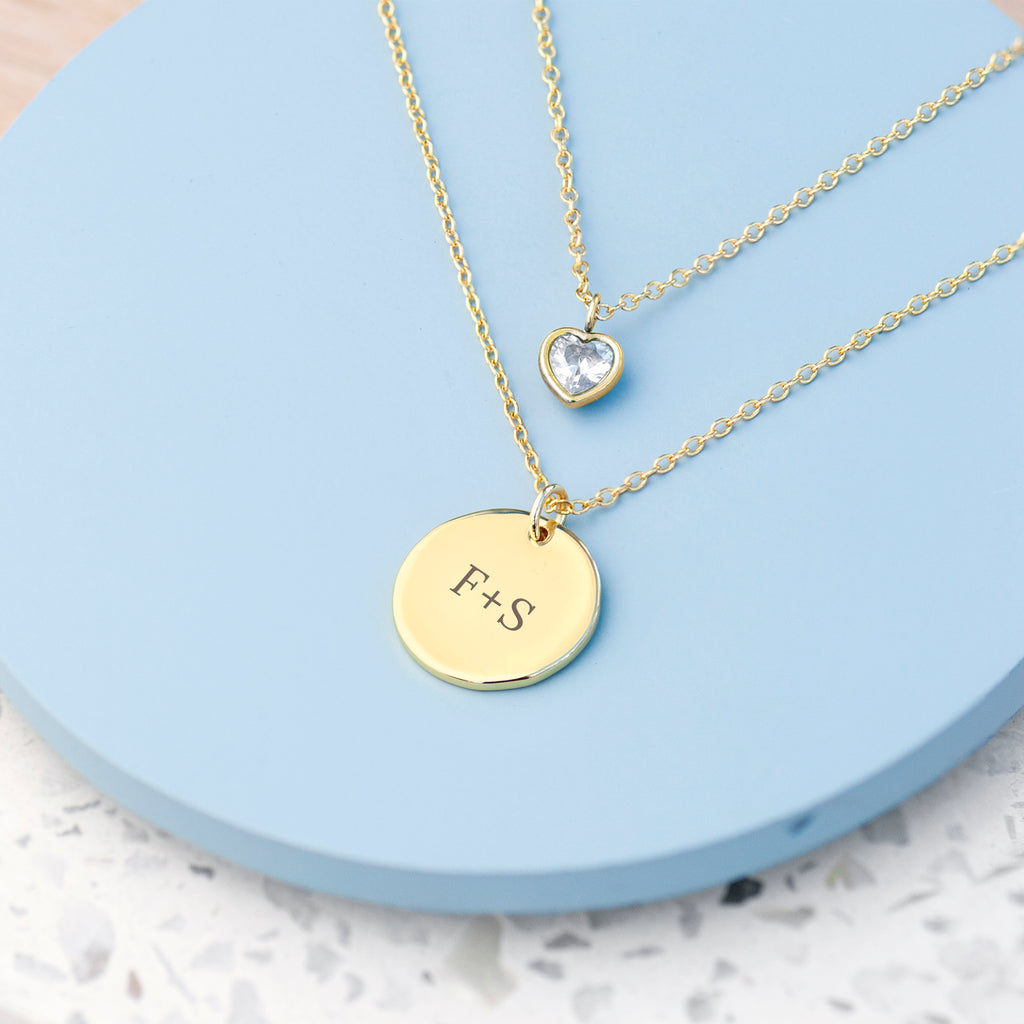 The perfect gift to show your love and appreciation for a special person in your life, they’ll be delighted to receive our wonderfully sentimental Personalised Layered Crystal Heart and Disc Necklace as a gift on any special occasion.