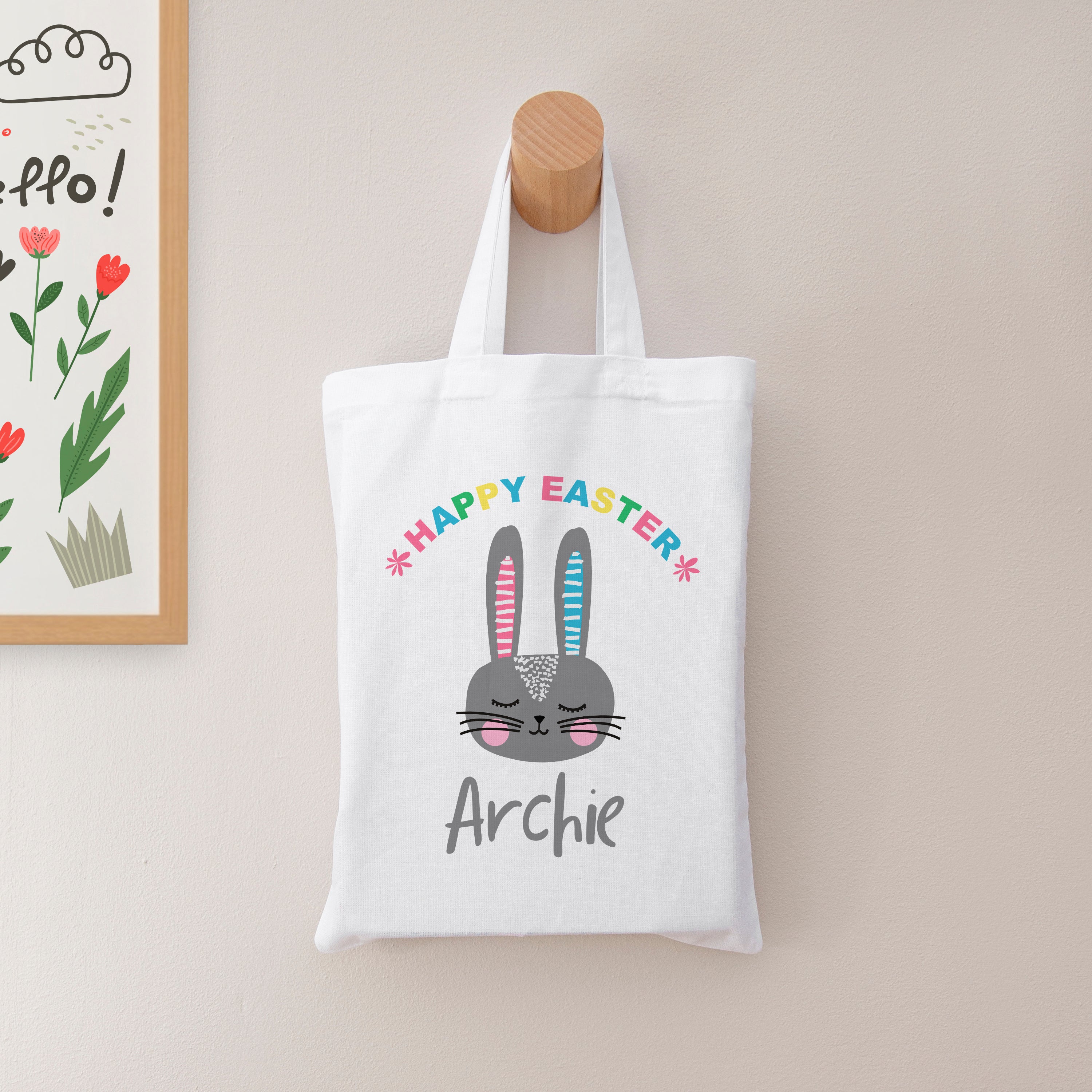 Looking for the perfect Easter gift for kids? Our spacious Personalised Rabbit Easter Egg Hunt Bag can hold a bounty of Easter eggs and treats, ensuring your little one has plenty of space to collect their goodies and treats during their Easter Egg hunt. Let your child's imagination run wild as they fill it with colourful eggs, chocolates, and surprises.