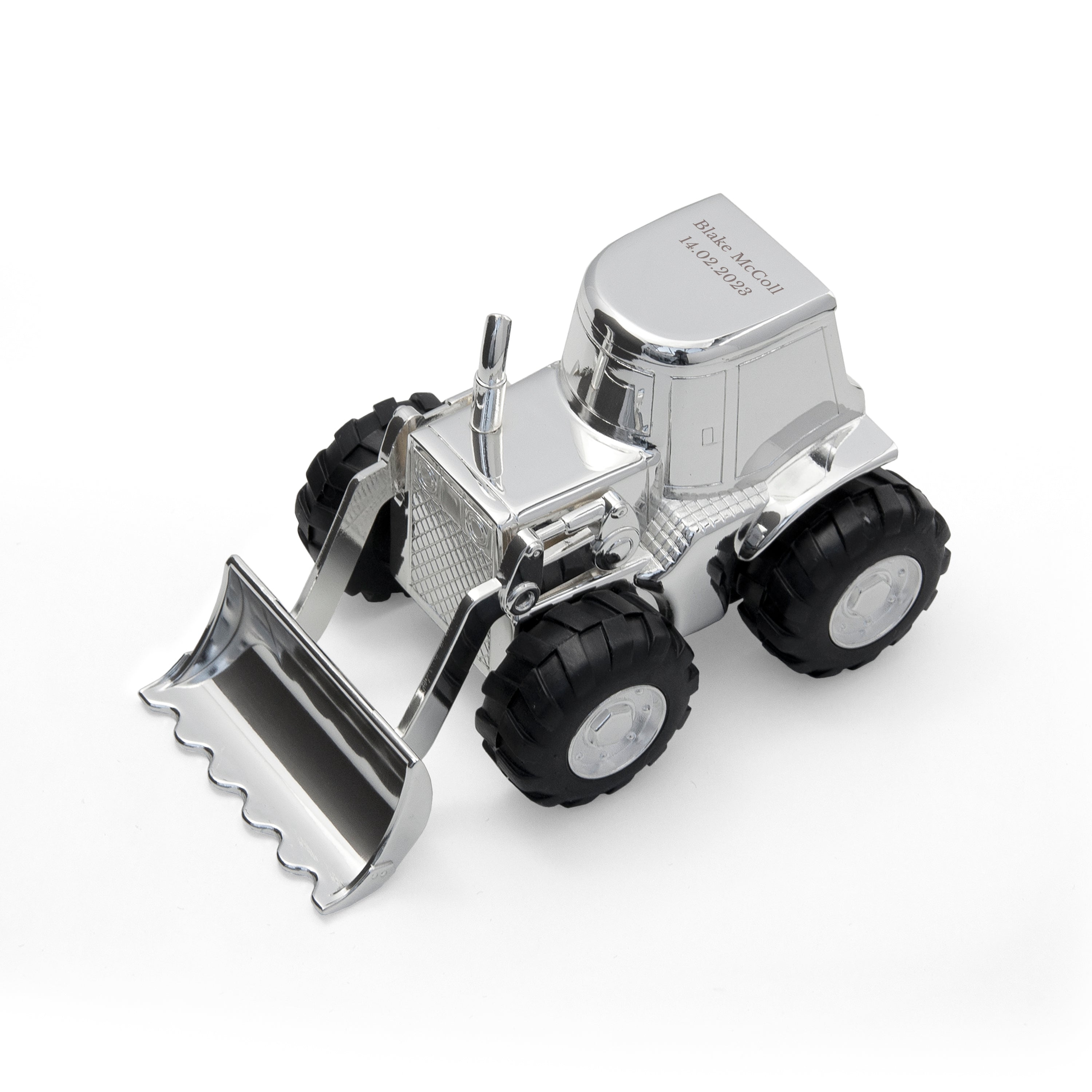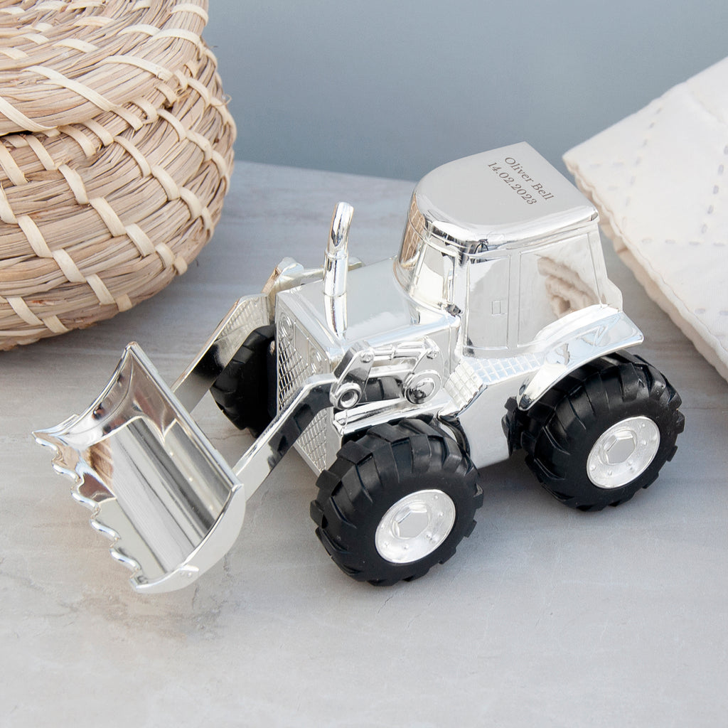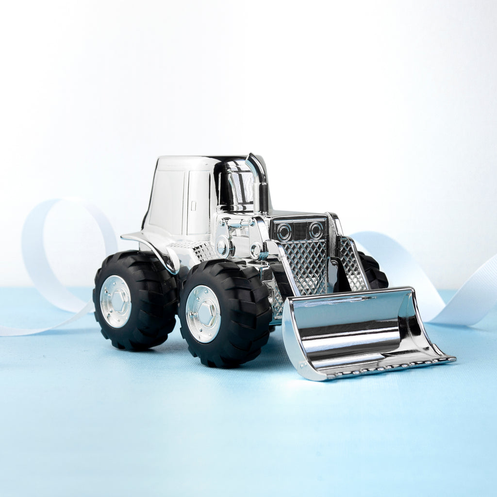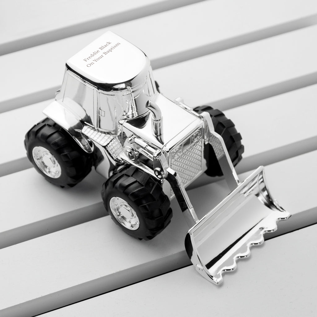 Anyone who has or has ever known a kid knows their absolute fascination with diggers! Our stunning Personalised Silver Plated Digger Money Box is created in the shape of a digger, or bulldozer. This premium quality gift has been crafted with a high level of detail from the wheels to the digger cabin. As your little one grows up, they’ll appreciate the expert craftsmanship that has gone into making this wonderful present and cherish it as a beautiful reminder of those precious childhood memories.
