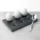 Made from solid rustic slate this luxury personalised egg tray is the perfect addition to your home. With space for six eggs and four small rubber feet to protect your surfaces on the reverse.