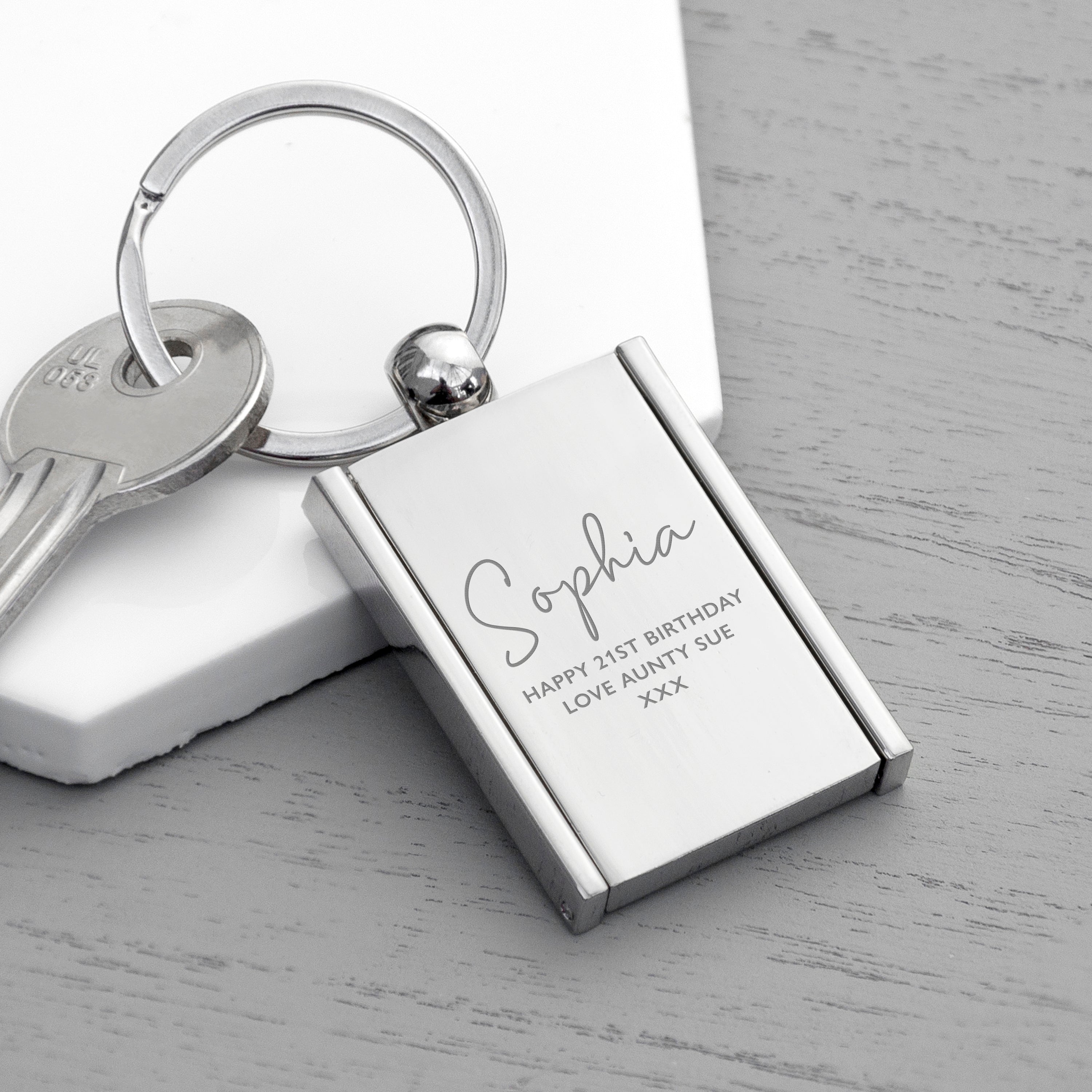 On the front the keyring, your loved one’s name and your personal message to them will be lovingly engraved by our expert personalisation team to a professional standard, creating a beautiful token of love that they’ll keep on them at all times.