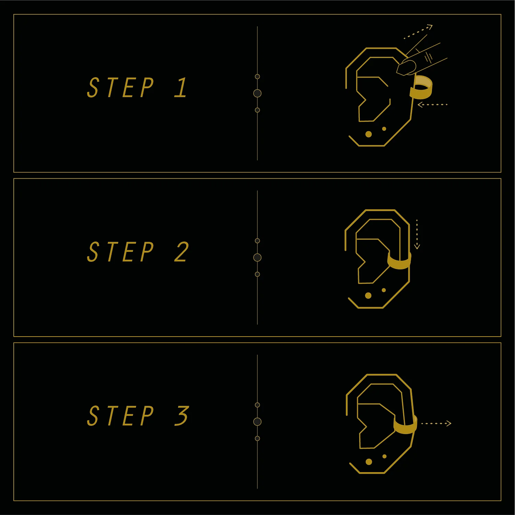 To wear, simply locate the narrowest part of your ear, often just above the lobe or at the upper cartilage. Gently slide the cuff over this section, rotating slightly if needed, until it sits securely and comfortably in place. Do not attempt to widen the cuff, particularly if it contains stones, as this may damage the setting. For best care, remove the cuff before bathing or sleeping, and store in a clean, dry place when not in use.