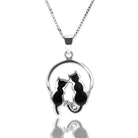 Sterling Silver Dual Cats Pendant Necklace