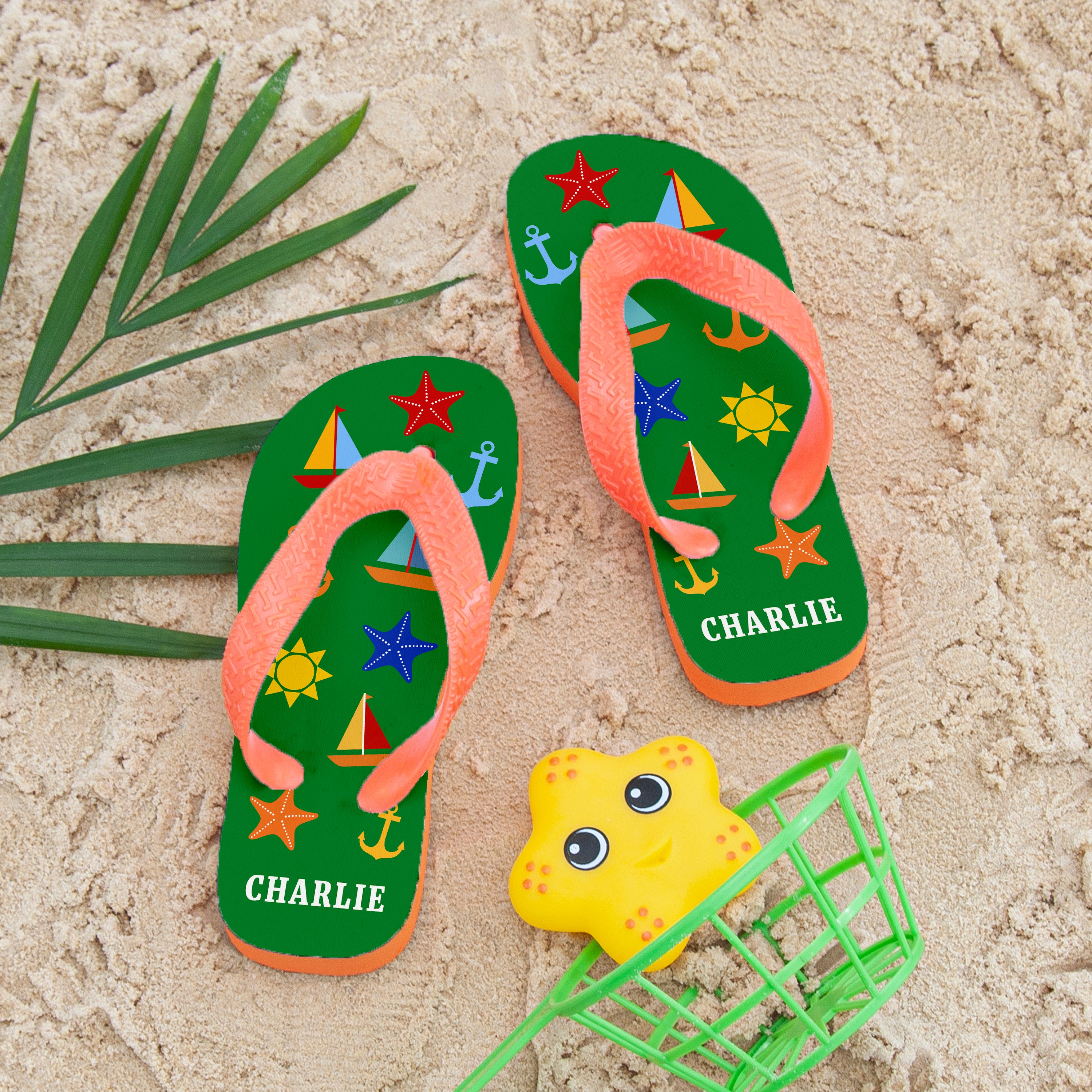 Say hello to summer in style with these absolutely adorable Personalised Kid’s Seaside Flip Flops; the perfect gift for your little adventurer who’s always ready to set sail! Ideal for heading off to the beach or having a summer chill in the garden, these bright and cheerful flip flops are just the ticket.