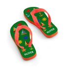Designed with little explorers in mind, these flip flops feature a vibrant green base that’s bursting with colourful seaside icons, think starfish, anchors, sailboats, suns and more, making them feel like a holiday underfoot with every step. The contrasting orange sole and straps add a fun pop of colour, so they stay secure while your little one runs about in the sand, by the pool, or around the garden.