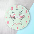 With its vibrant colours and charming line art design, this glass wall clock is simply delightful. Its eye-catching elegance will delight any home or studio décor - making it the conversation piece that stands out from all the others. It's ideal for anyone who loves dance and wants to bring some graceful shimmer into their lives and space. '[Name]'s Studio' comes as standard text with this beautiful design.