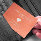 Our gorgeous Personalised Love Note Silver Metal Wallet Keepsake is a stand out gift for Valentine's Day! With the heart engraved in the middle of the card this metal insert is a way to make a love letter or note permanent. It's a perfect Valentine's gift and can make a statement in silver. It comes presented in a black gift box.