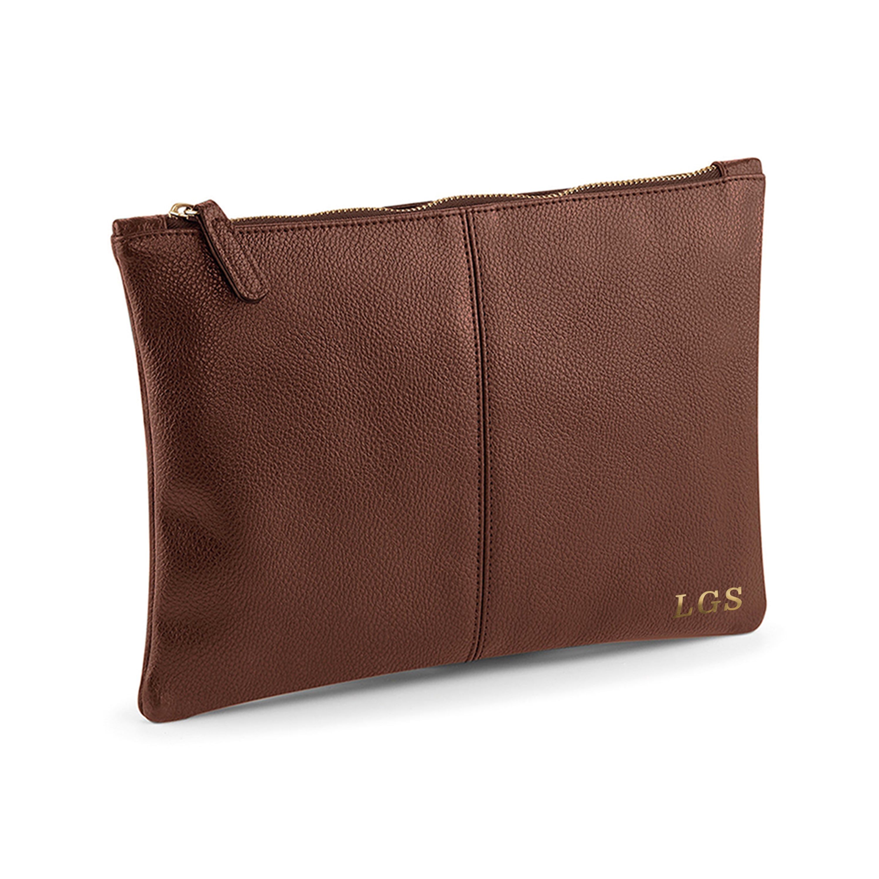 Our stylish vegan leather monogrammed vegan leather men's accessory pouch is sleek and stylish with its gorgeous faux leather design. It’s also incredibly functional too, fitting many of his favourite tech gadgets and accessories, including the iPad mini, with ease. This makes it the ideal gift for him to carry round all his accessories in one handy pouch up close and easily accessible - perfect for birthdays or as a Christmas gift for him.