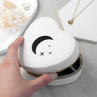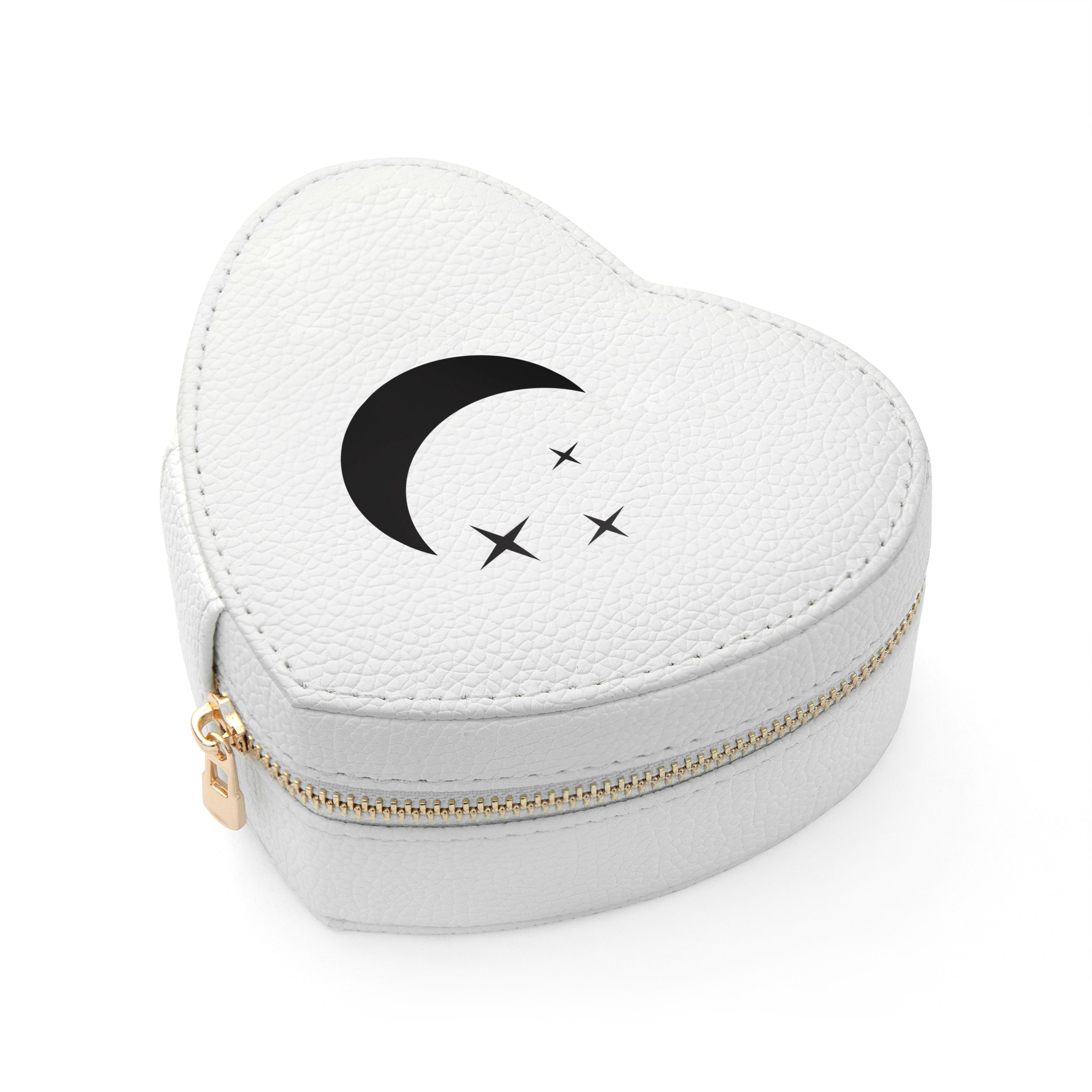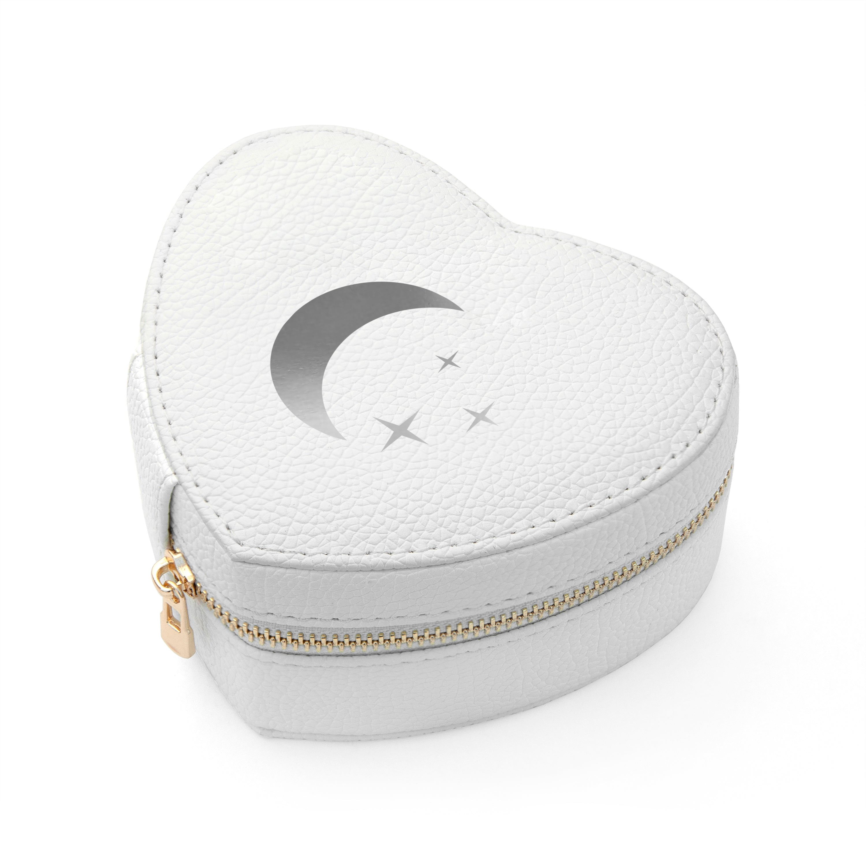 Bringing a touch of celestial elegance to your jewellery collection with our enchanting Moon and Stars White Heart Jewellery Case. This enchanting trinket case, shaped like a heart, features a delicate moon and stars design on its smooth white exterior. Both stylish and durable, this accessories holder is perfect for safeguarding your precious jewellery pieces whether at home on your bedroom dressing table or on the go.