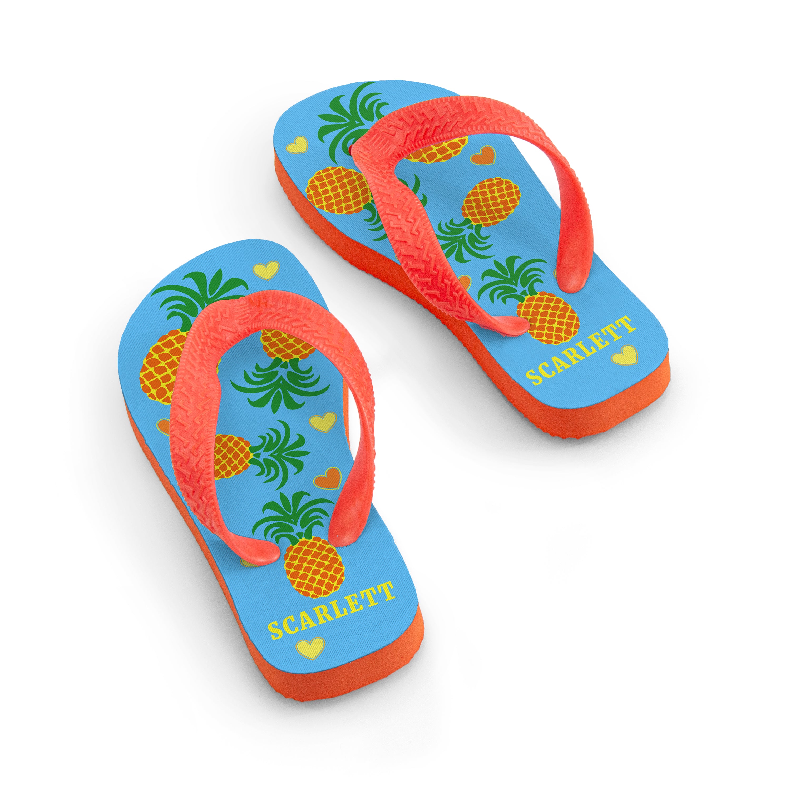 Get ready to make a splash this summer with our Personalised Partying Pineapples Child's Flip Flops, the perfect combination of fun, comfort and tropical style for your little one! It’ll make a brilliant birthday or Christmas gift for any child.