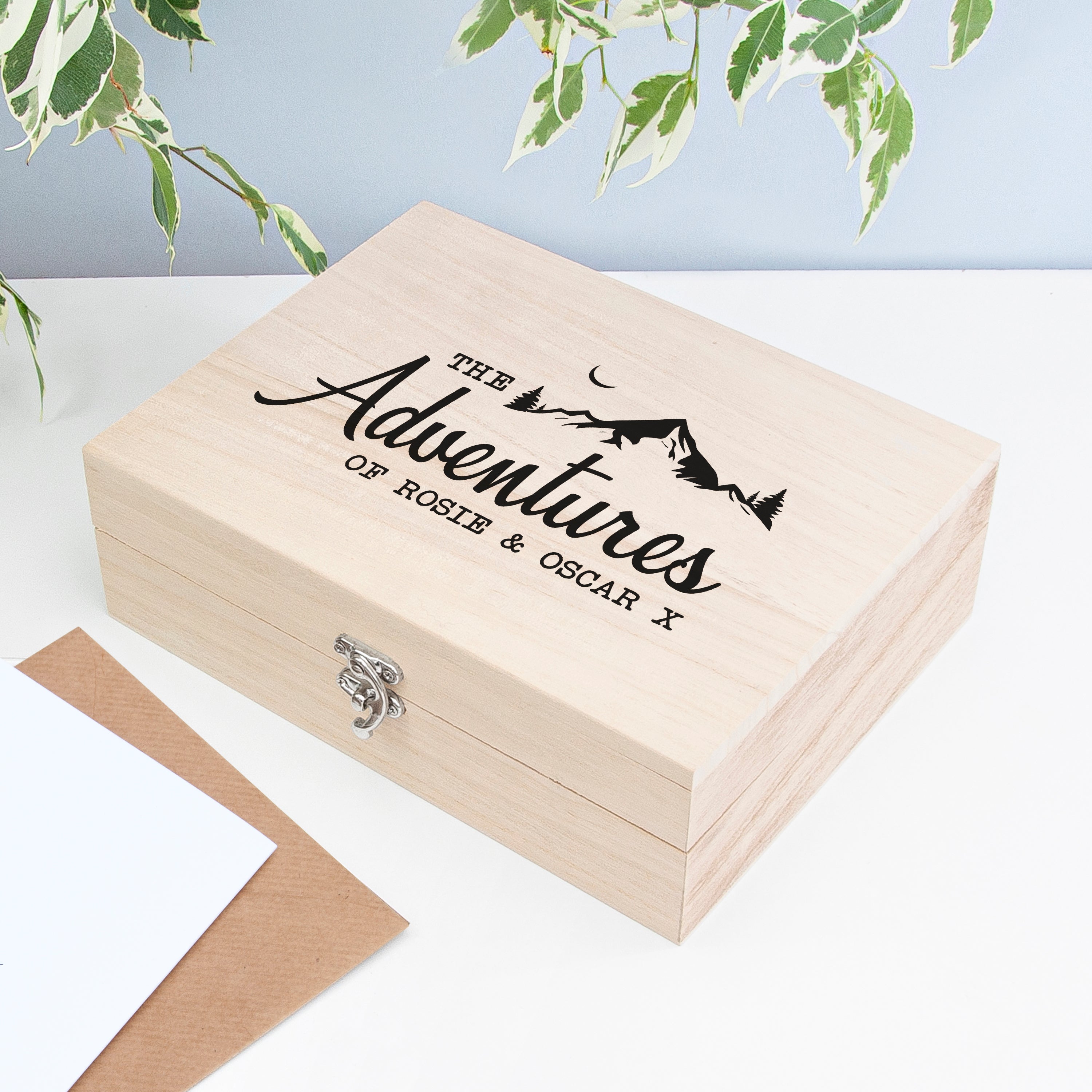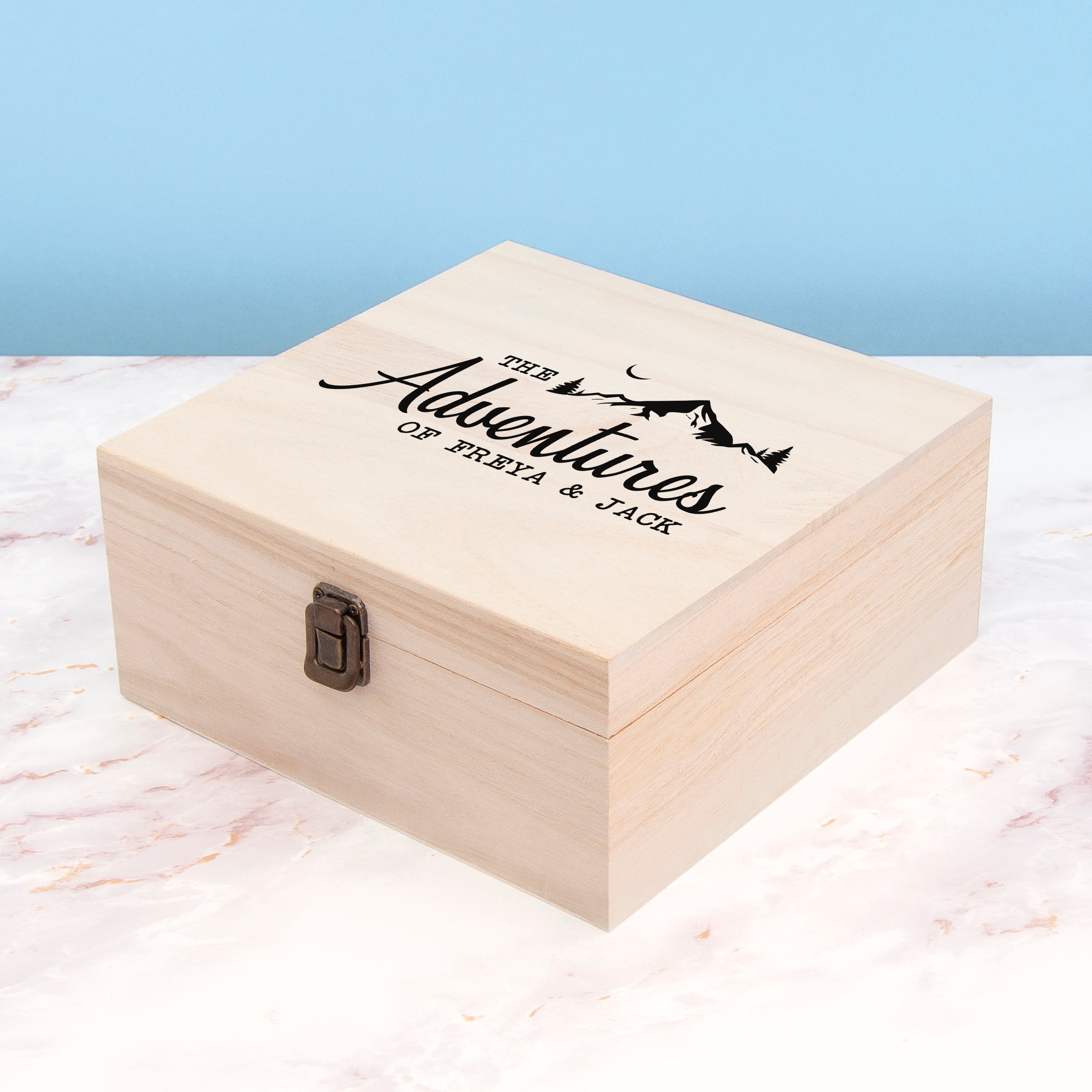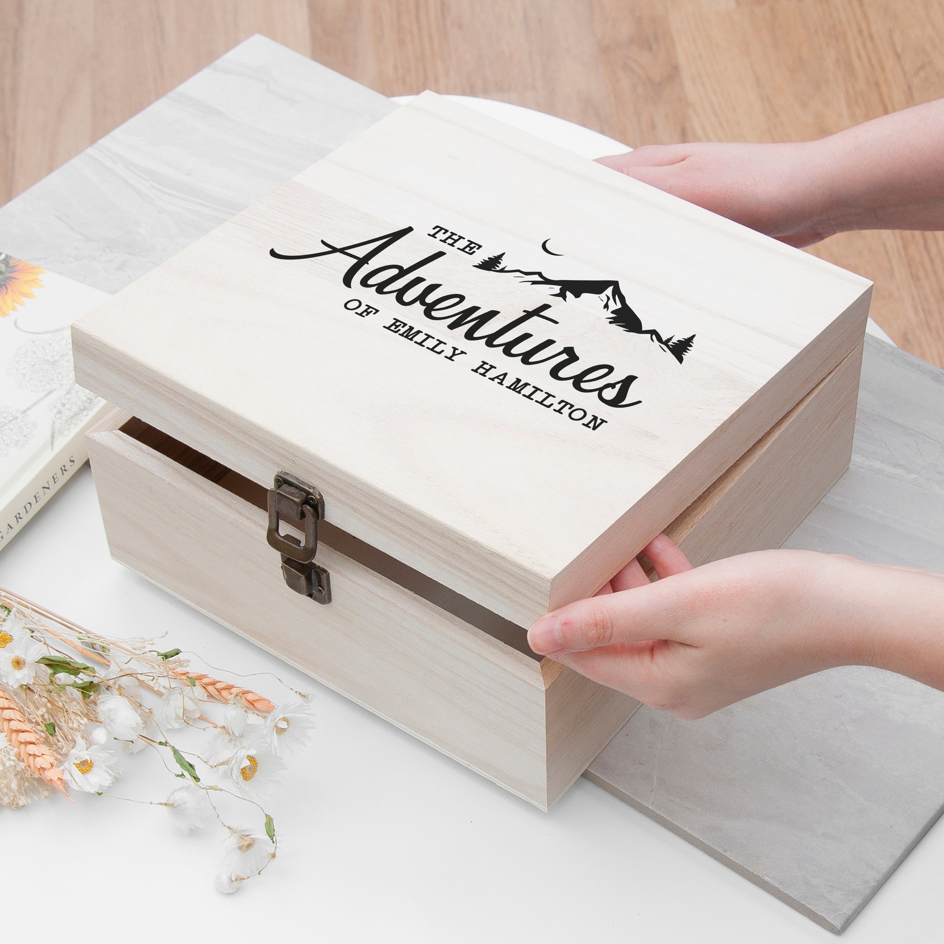 This wooden memories box features a mountain range design, as if you were transported to the icy Himalayas themselves, symbolising the many adventures you’ve been on over the years.