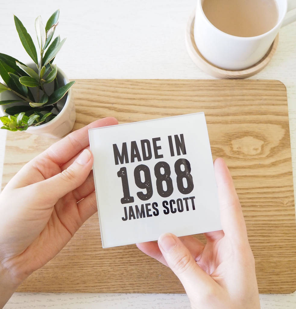 Wish a special friend or family member happy birthday with our gorgeous personalised birth year glass coaster. This sleek square glass coaster will make the perfect birthday gift for your loved one. Not only will this beautiful coaster be the centre of attention whether you have friends over with its stylish design, but it also serves a practical purpose, protecting your tables and surfaces from pesky cup stains.