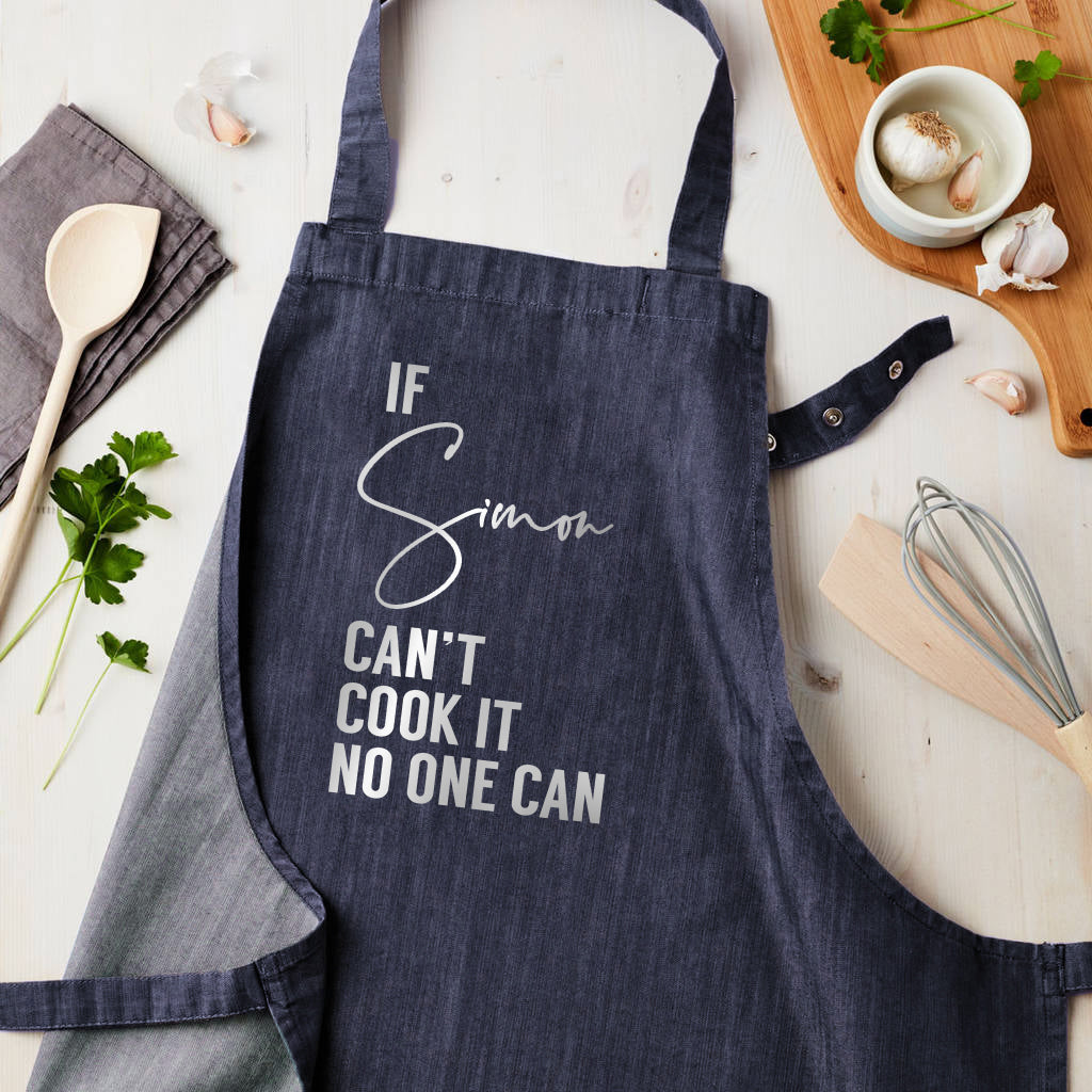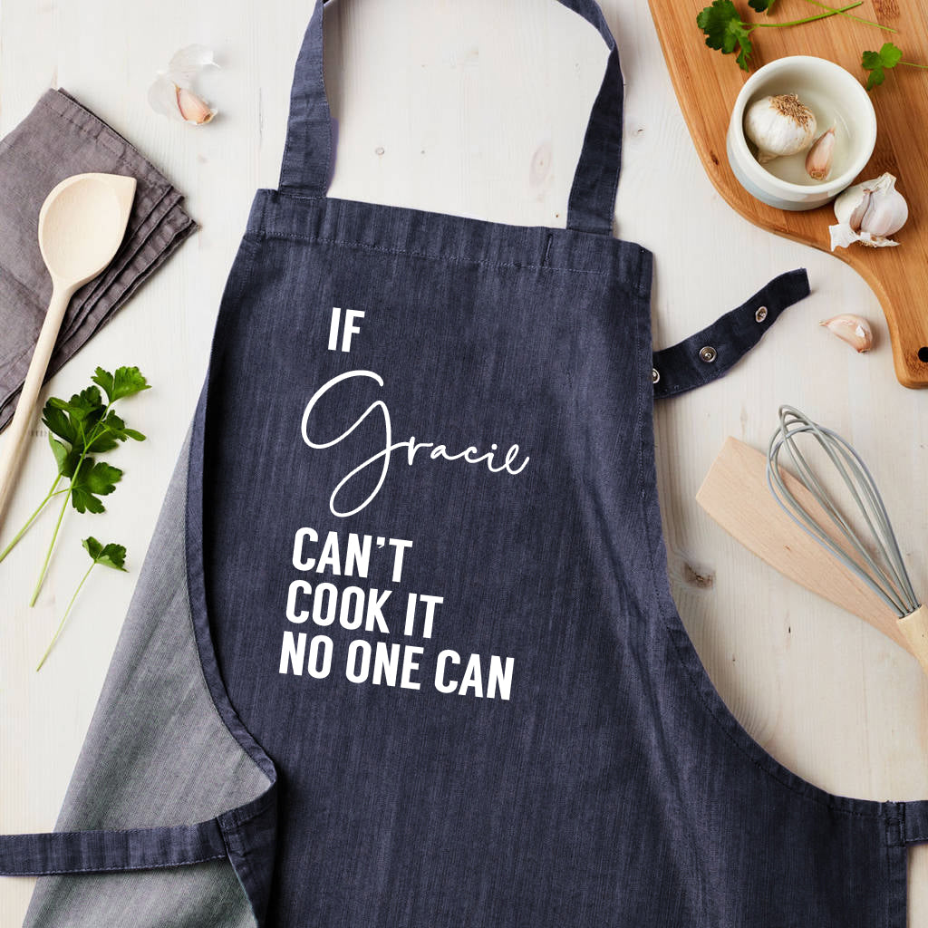 Whether you're a (well) seasoned pro or a newbie in the kitchen, our gorgeous personalised blue denim can cook it apron will be your trusty kitchen sidekick. It's your secret ingredient for whipping up those award-winning pies or crafting those show-stopping cupcakes.