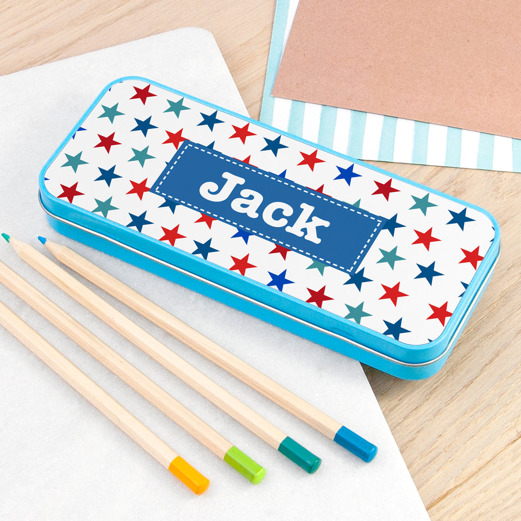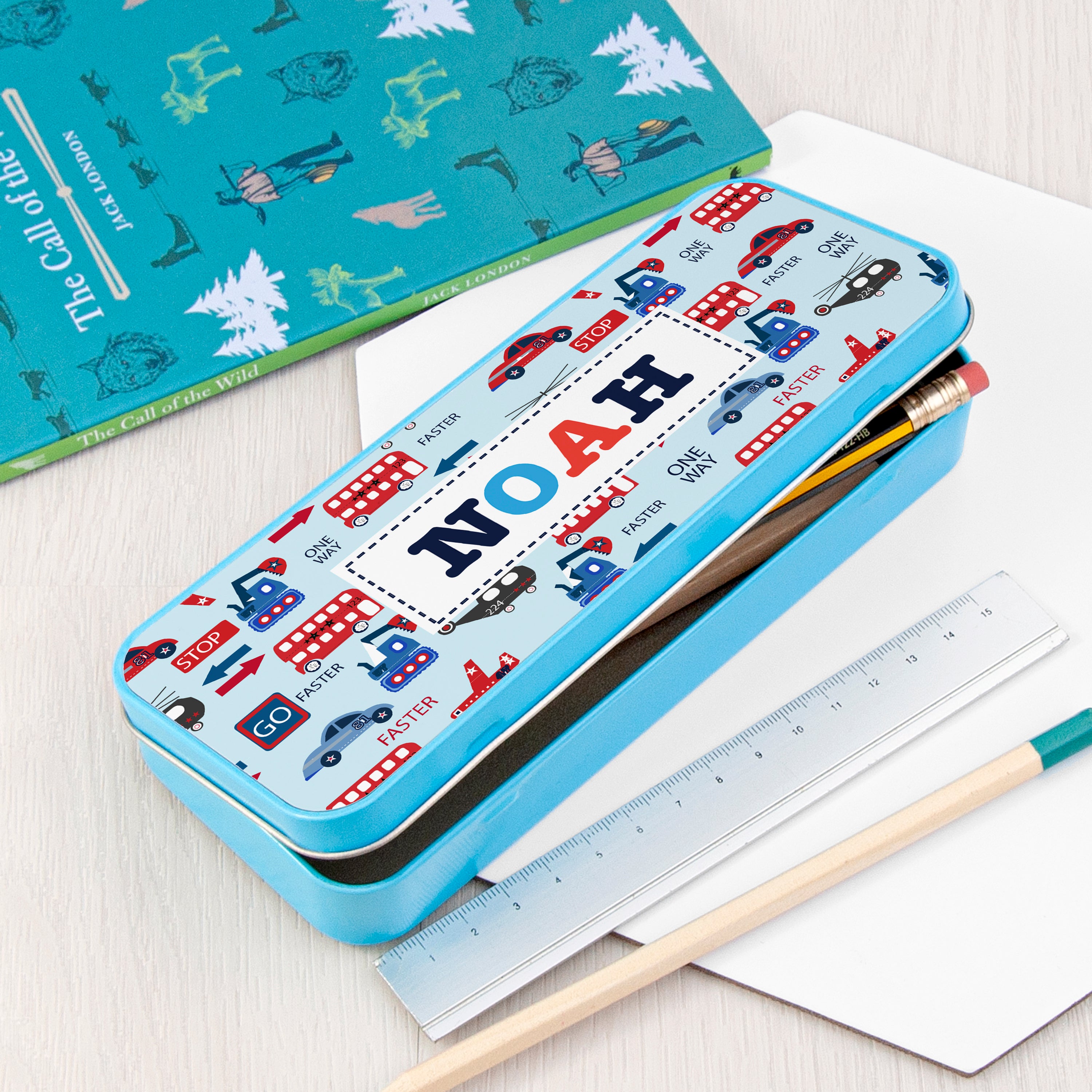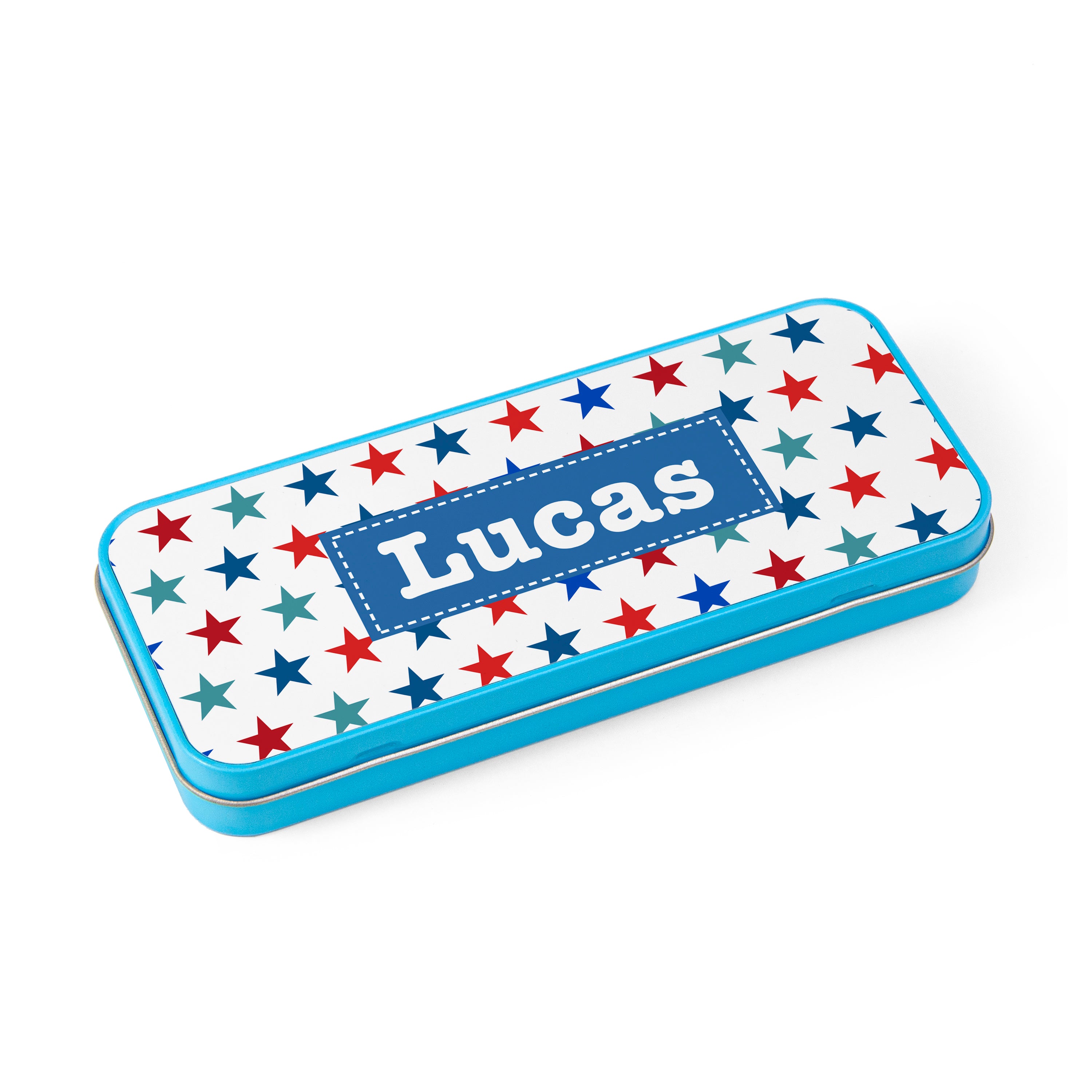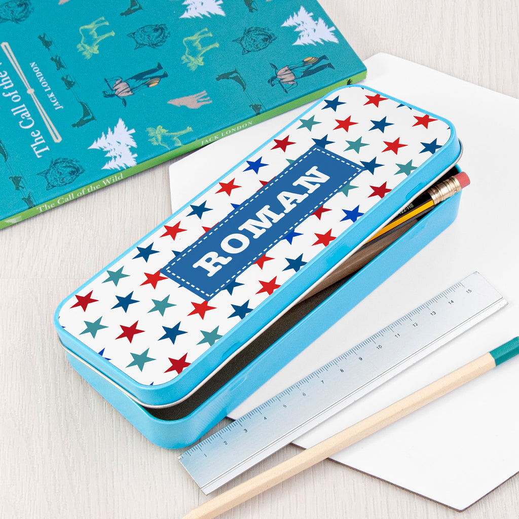 Whether he uses it at school, home or both, treat him to one of our stylish new personalised boy's blue metal pencil case tins so that he can keep all his stationery essentials stored together for whenever he needs it. The perfect birthday, back-to-school or Christmas gift for him, this gorgeous pencil case tin is the ideal size for all his stationery essentials, meaning he’ll be ready for a fun and productive day at school.