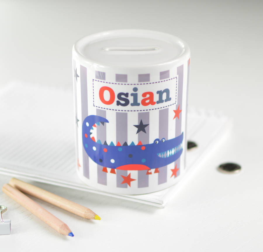 For the ultimate birthday or Christmas gift for him, personalise your little one’s very own money box with his name and our fantastic team of personalisation experts will do the rest meticulously printing his name and your chosen design onto his money box to the highest standard. The rest will be more than a means of holding money, but a thoughtful keepsake that he’ll use all the time and treasure for its sentimental value as he grows older.