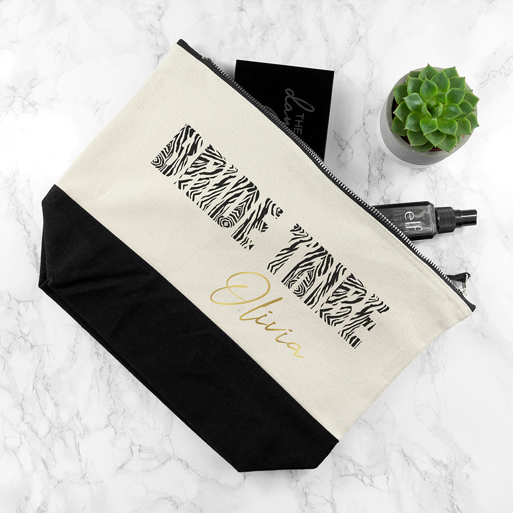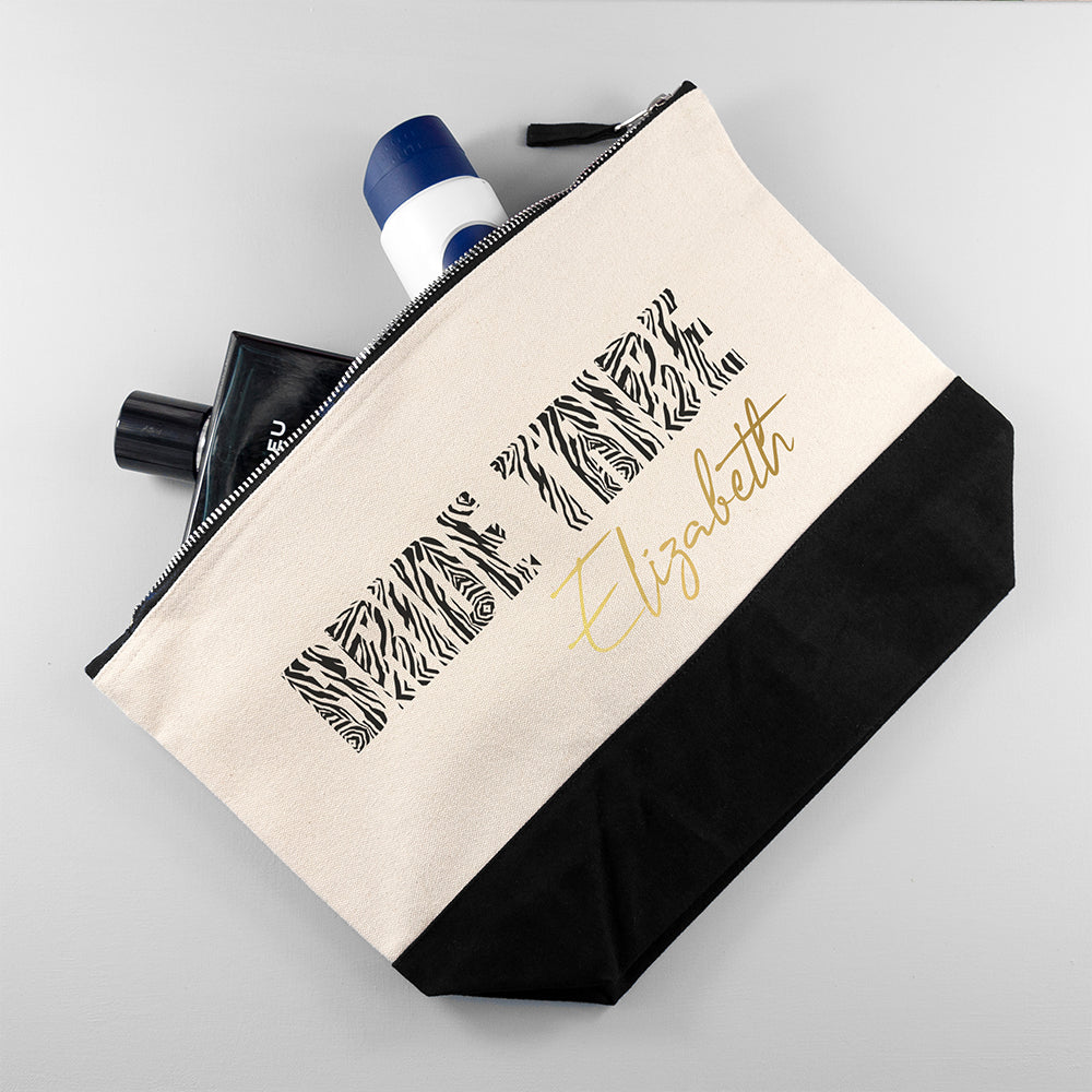 Personalised Bride Tribe Zebra And Gold Makeup Bag