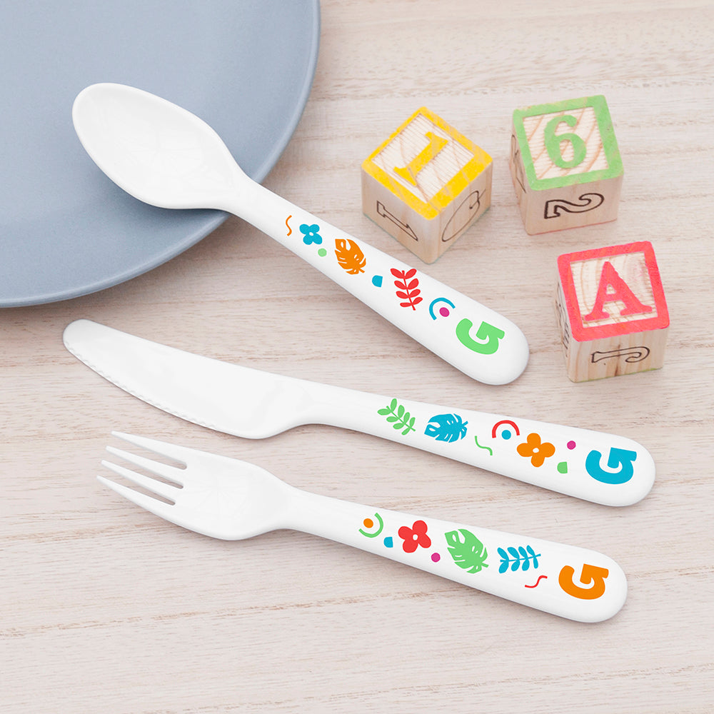 Above your loved one's initials on the handle, all the utensils come with a standout colourful shape design, with all manner of shapes, from leaf patterns to circles and squiggles. It's sure to put a smile on your child's face and add a bit of colour to everyone's day!