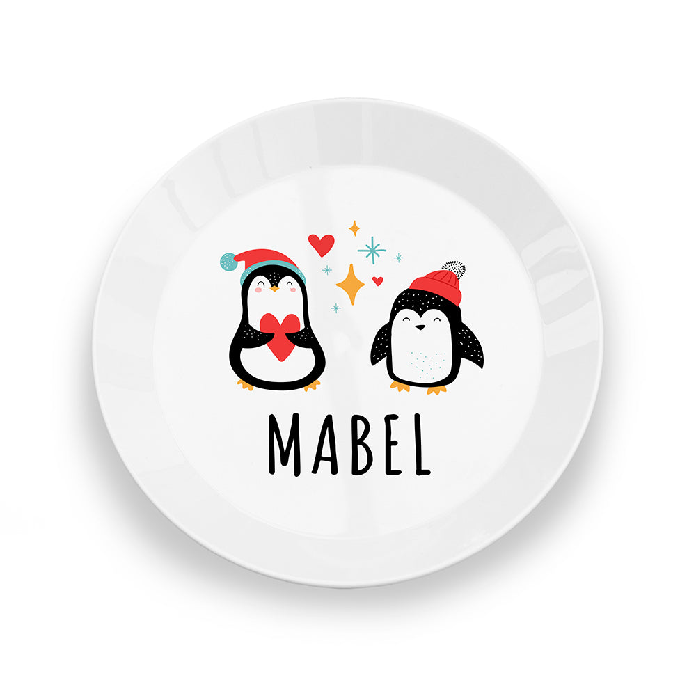 Their stunning personalised kids plate comes with a super-cute winter penguin design with two adorable penguins as standard, one holding a love heart, which will add that ray of sunshine to dinnertime. They are standing under a snowy starry sky for a beautiful scene. For that perfect birthday gift or stunning sentimental Christmas gift, they're sure to cherish forever - you've come to the right place!
