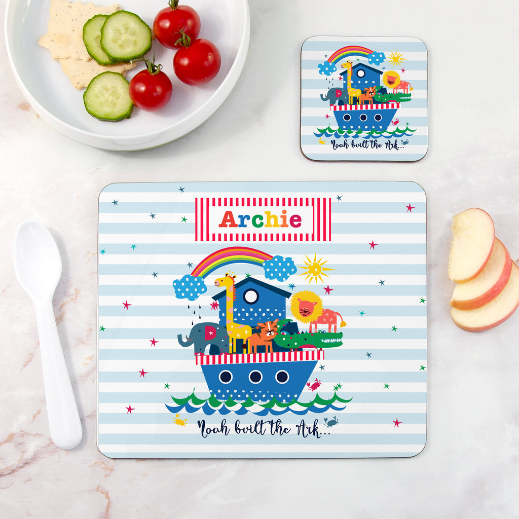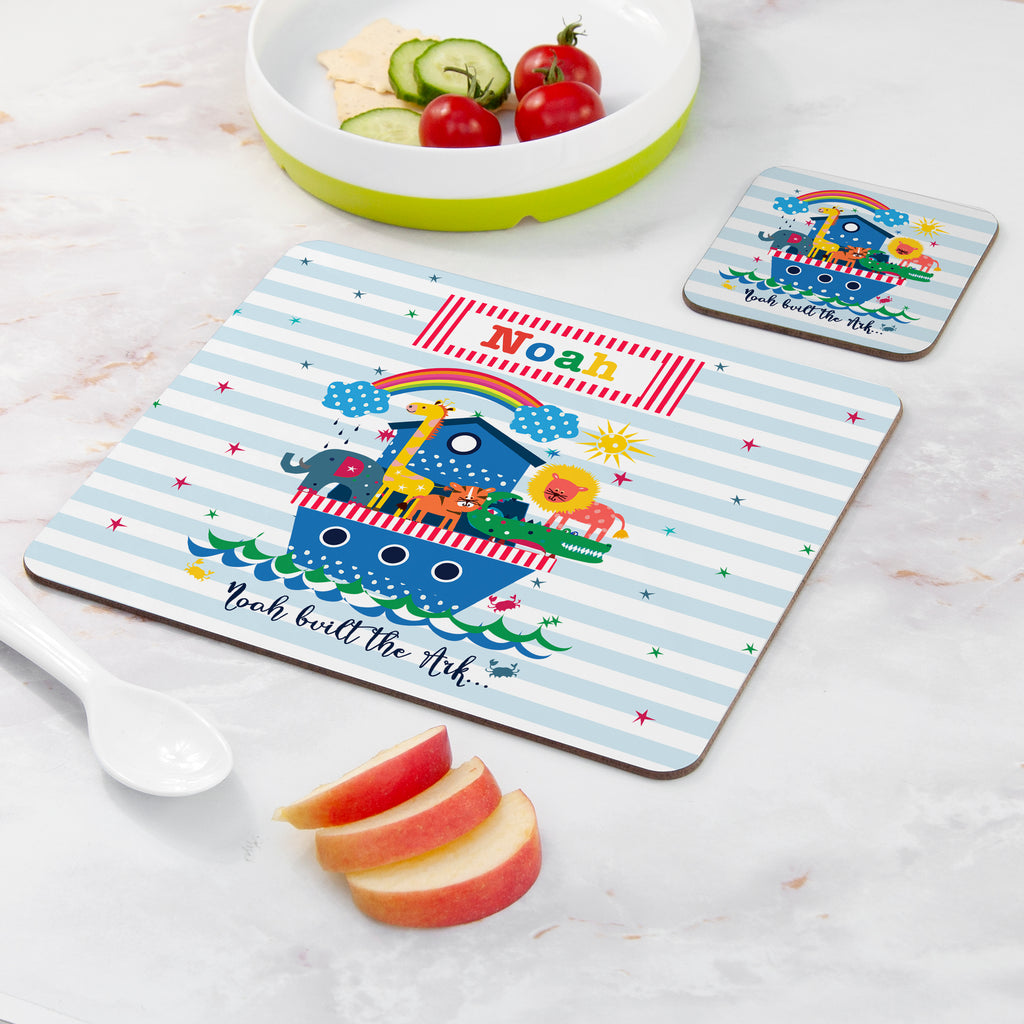 Personalised Kids Noah's Ark Placemat and Coaster Set