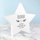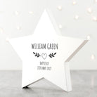 This simple yet elegant star keepsake is a perfect gift for christenings and baptisms to remember the day by. With the simple wreath design and the heart between them it's a small treasure to hold in their nurseries and bedrooms.