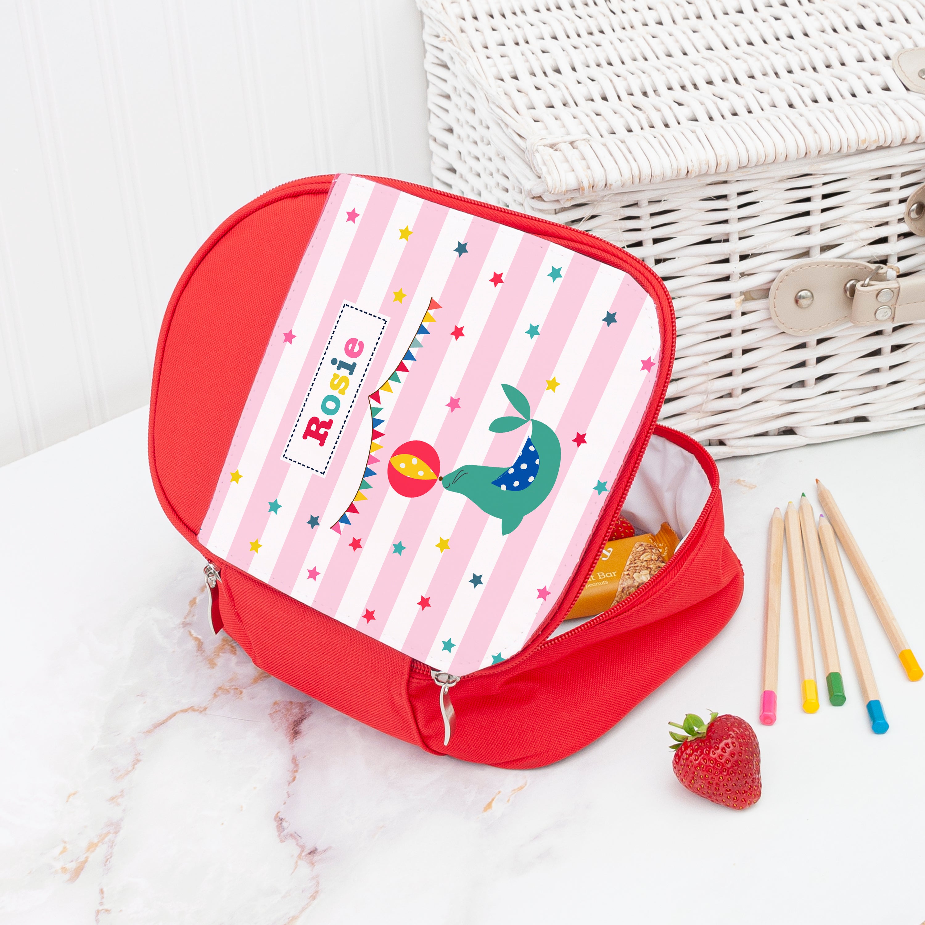 No more clowning around looking for the perfect lunch bag to give to a child for their birthday - because with our stunning Personalised Circus Themed Red Lunch Bag you've found it! All the fun of the circus is bottled into this stylish lunch bag, which will effortlessly sort all your little one’s lunchtime goodies, like sandwiches, juice cartons and snacks, in one place ready to eat.