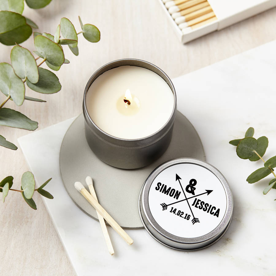 Ignite the flames of love and celebrate the unique connection between two hearts with our Personalised Couple's Arrows Scented Soy Candle. This romantic masterpiece is the perfect Wedding present, special Anniversary surprise or passionate Valentine’s couple’s gift. It’ll serve as a permanent reminder of the warmth and depth of their love and affection for each other.