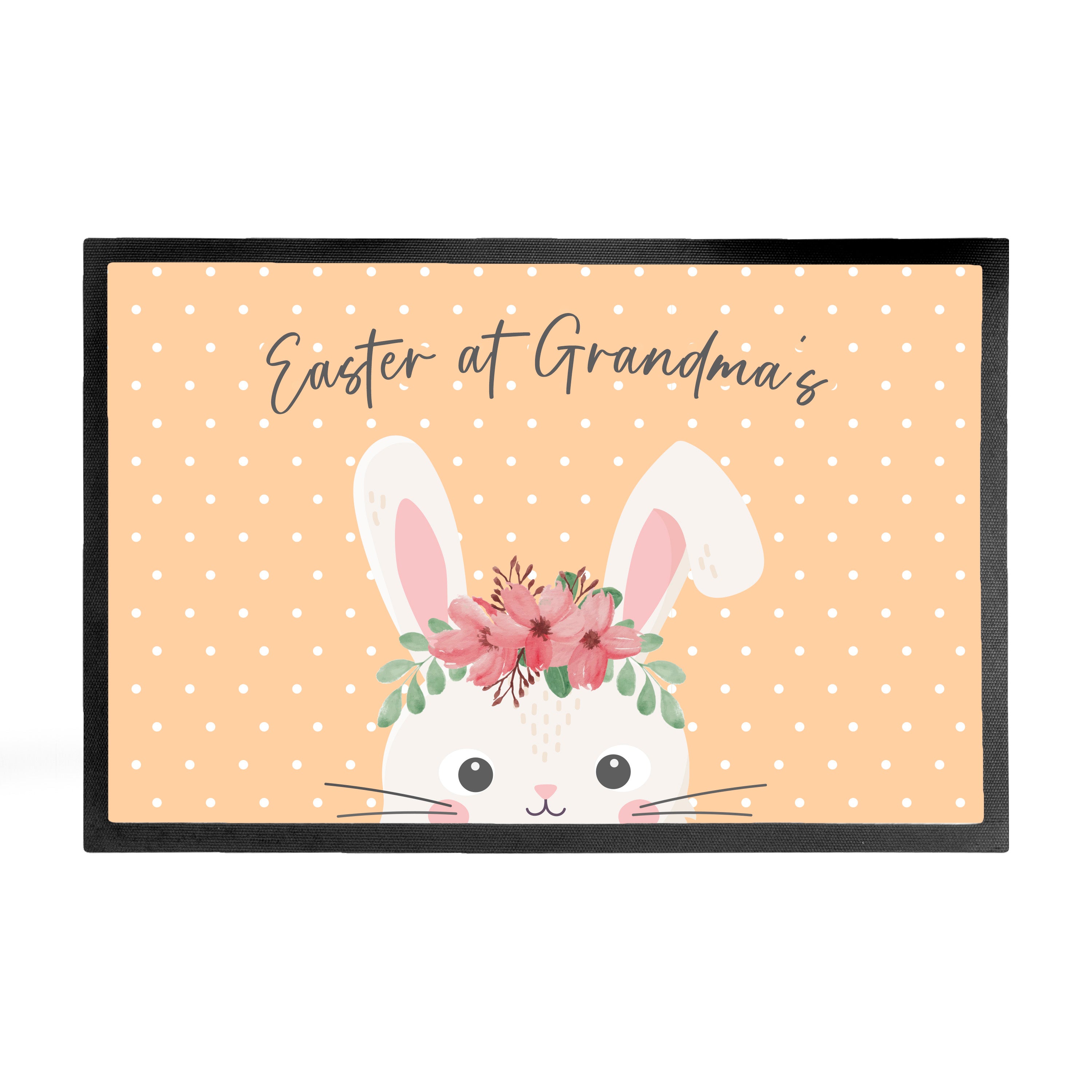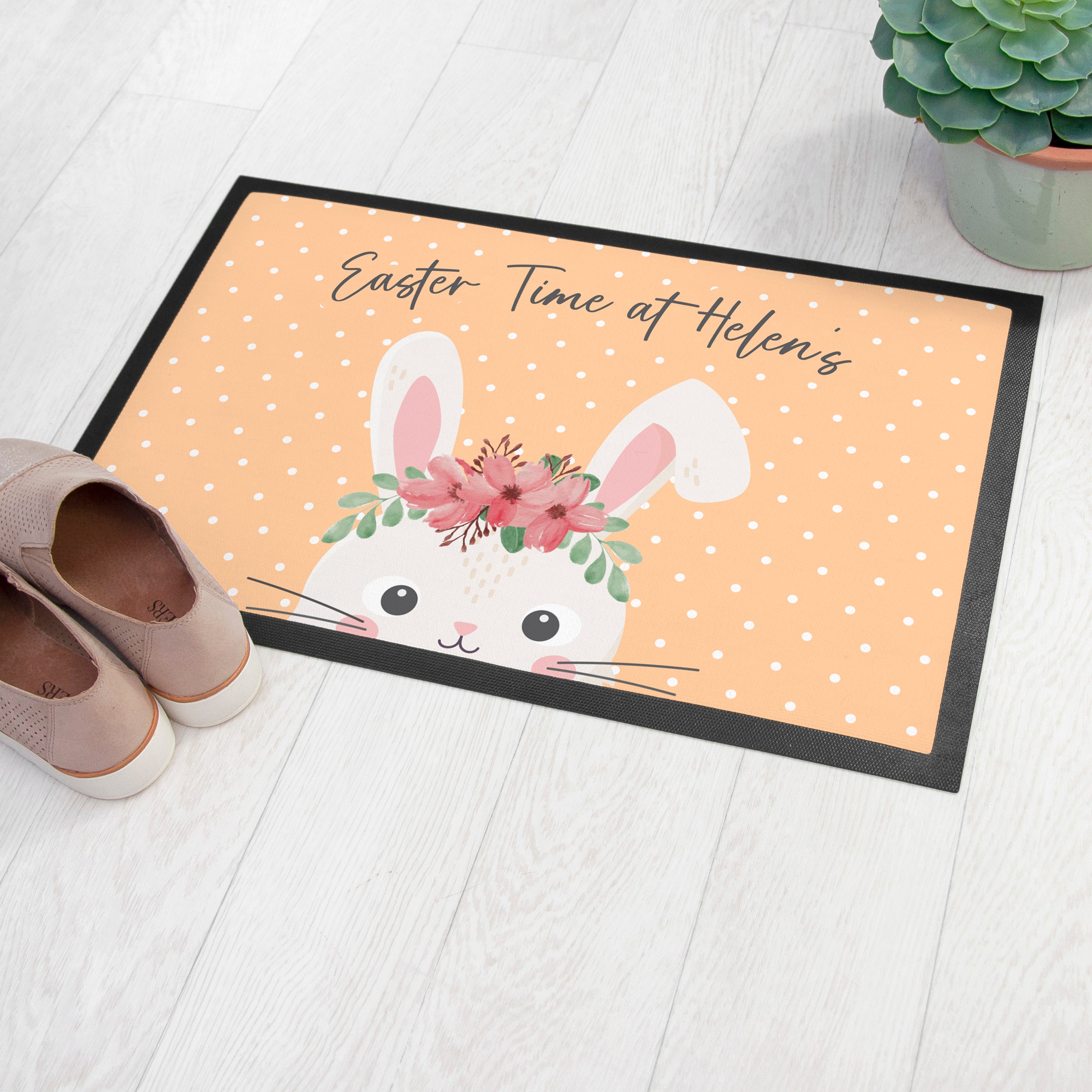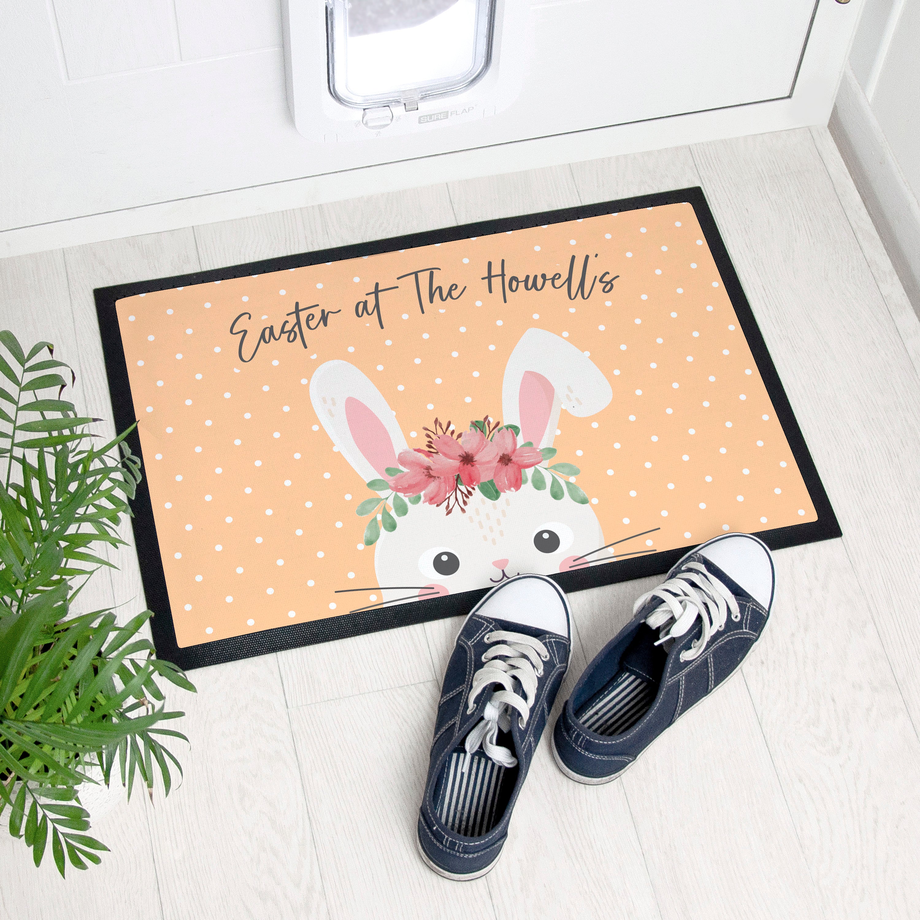 Hop into Easter with our Personalised Easter Rabbit Indoor Doormat. Featuring a super-cute bunny rabbit that will welcome visitors to your home! Beautiful and bright, your loved ones will adore this colourful and hard-wearing doormat - it’s sure to spark conversation at dinner!